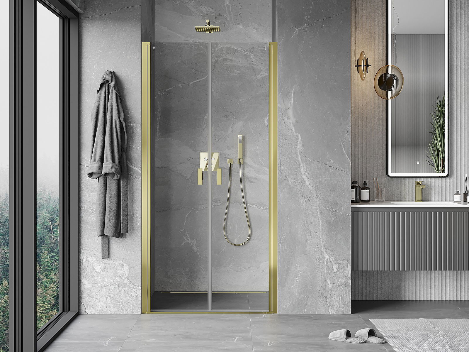 Det praktiska och bekväma handtaget är tillverkat av hållbar och tålig metall. Den moderna formen i kombination med en finish som matchar profilernas färg ger helheten ett modernt och stilfullt utseende, samtidigt som det framhäver estetiken i varje badrum.