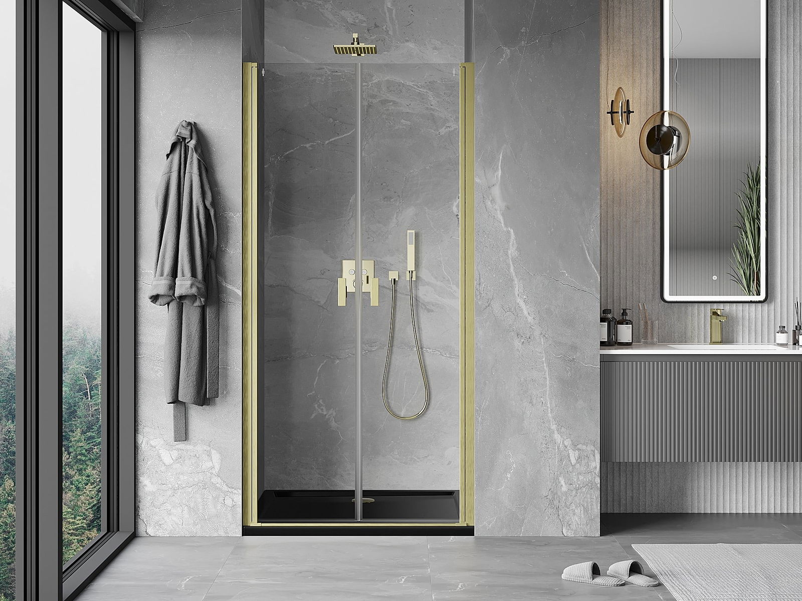 Det praktiska och bekväma handtaget är tillverkat av hållbar och tålig metall. Den moderna formen i kombination med en finish som matchar profilernas färg ger helheten ett modernt och stilfullt utseende, samtidigt som det framhäver estetiken i varje badrum.