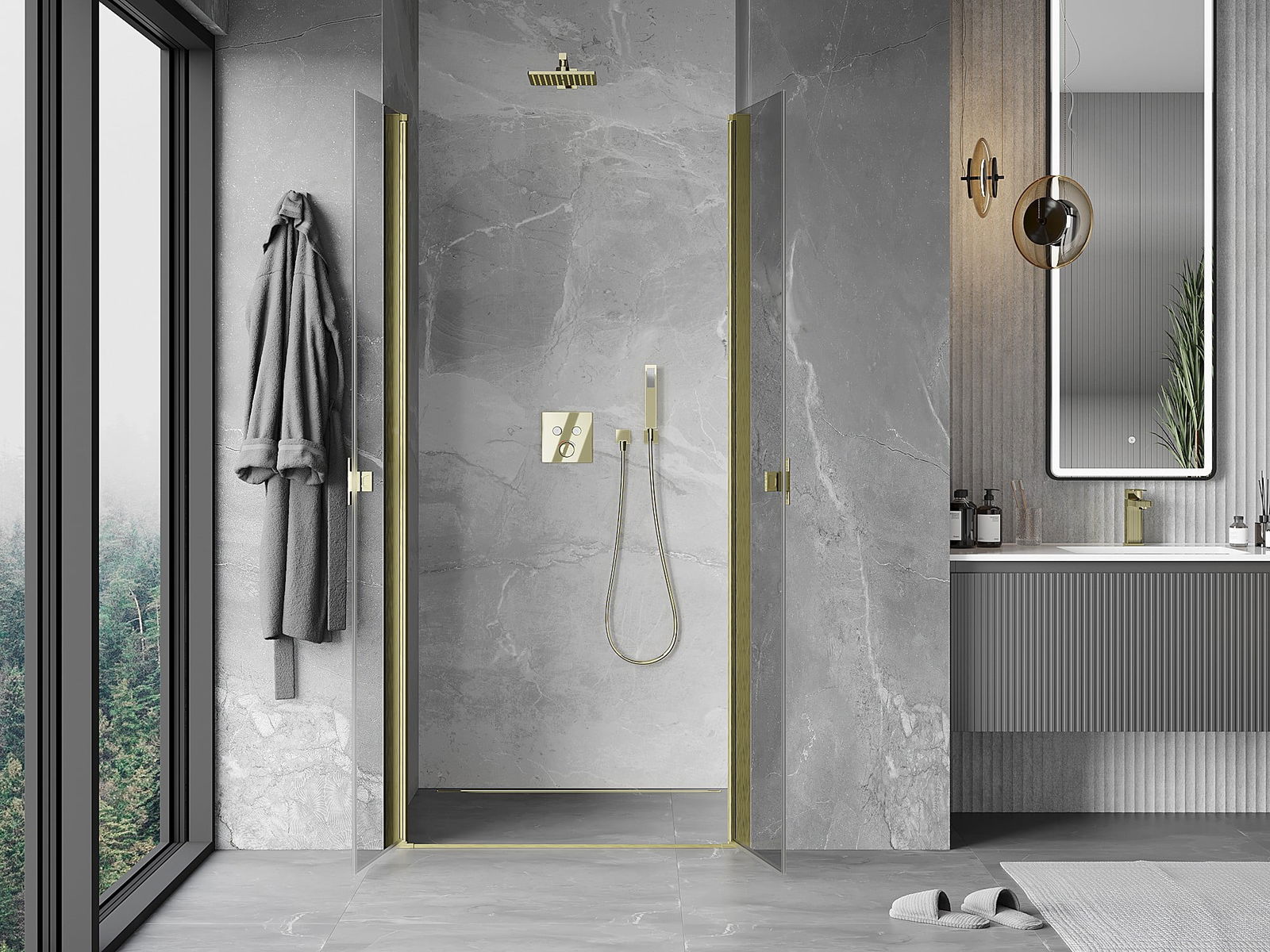Mexen Mist svängbara duschdörrar 100 cm, transparenta, borstad guld - 8A7-100-000-55-00