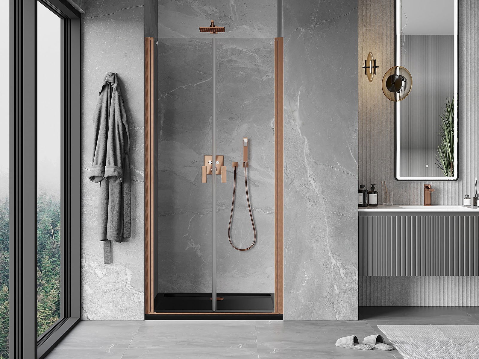 Det praktiska och bekväma handtaget är tillverkat av hållbar och tålig metall. Den moderna formen i kombination med en finish som matchar profilernas färg ger helheten ett modernt och stilfullt utseende, samtidigt som det framhäver estetiken i varje badrum.
