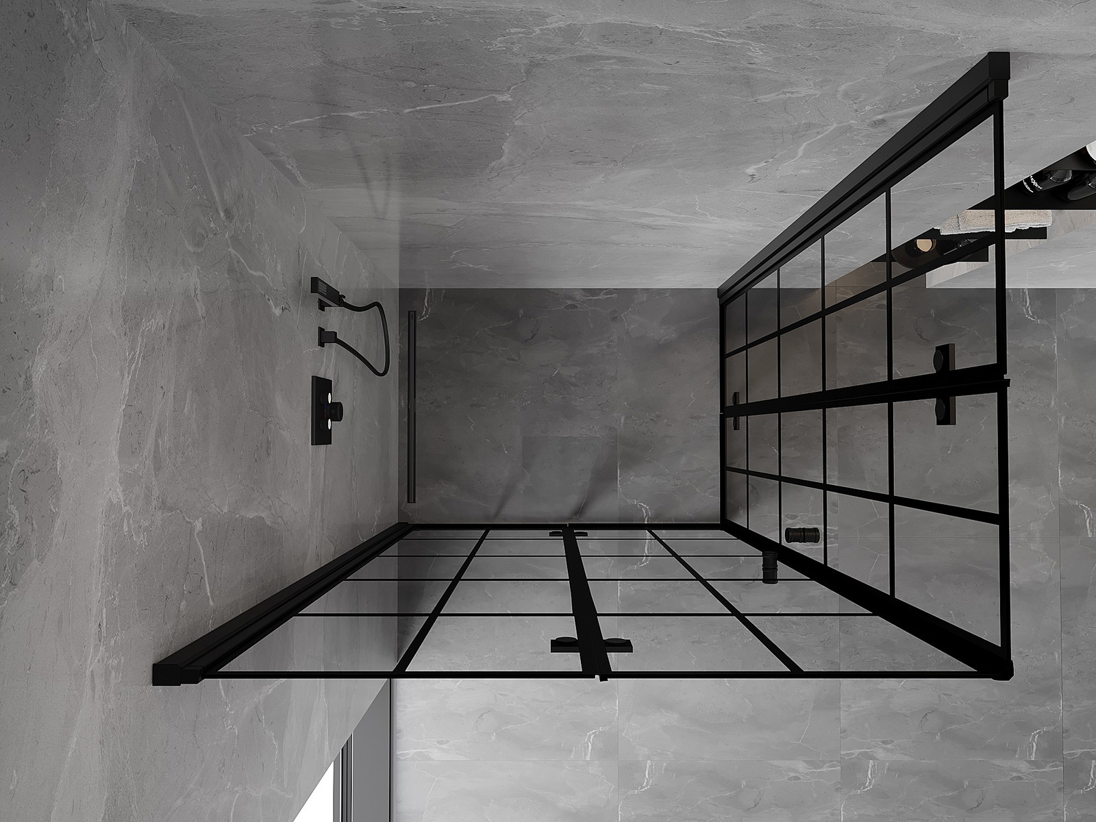 Mexen Mist-F Duo hopfällbar duschkabin vänster 110 x 70 cm, svart rutnät, svart - 8A6-110L-070P-70-77