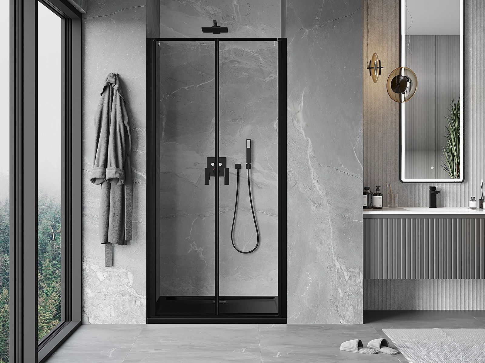 Mexen Mist svängbar duschdörr 70 cm, svart ram, svart - 8A7-070-000-70-70