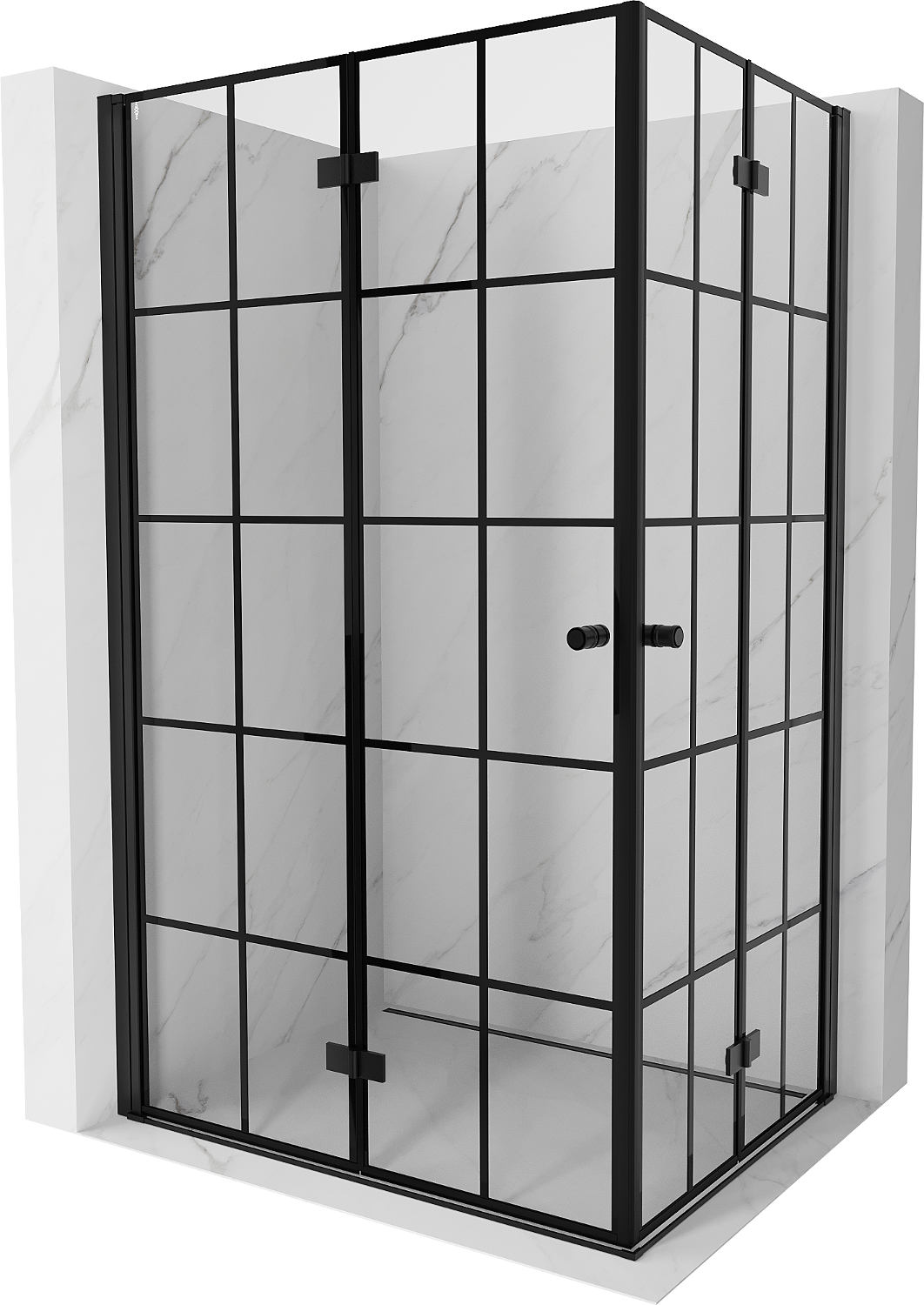 Mexen Mist-F Dubbelduschkabin vikbar vänster 95 x 75 cm, svart rutnät, svart - 8A6-095L-075P-70-77