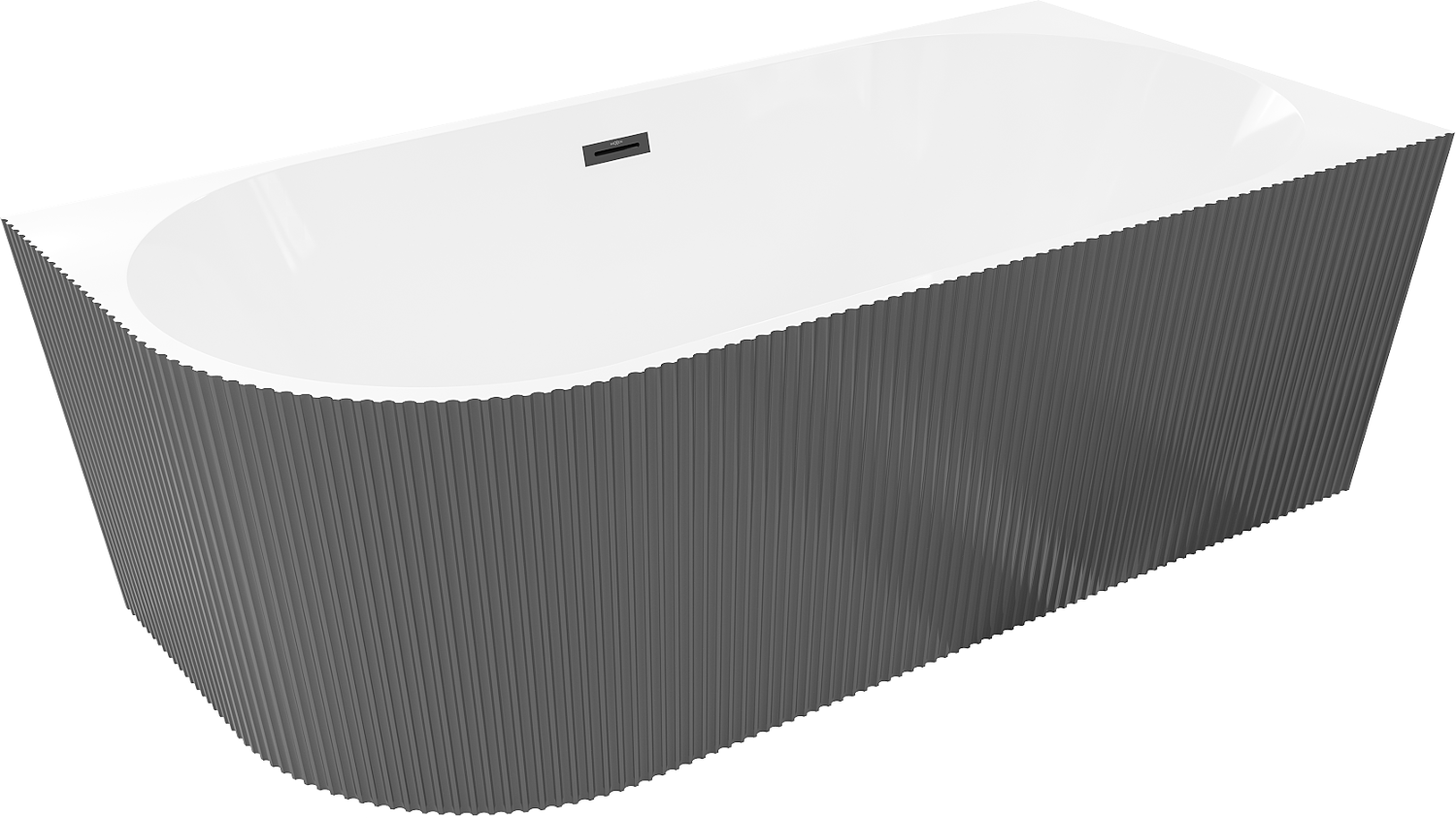 Mexen Silo fristående hörnbadkar höger räfflad 170 x 80 cm, vit/grå, svart överfyllnad - 52891708062P-70