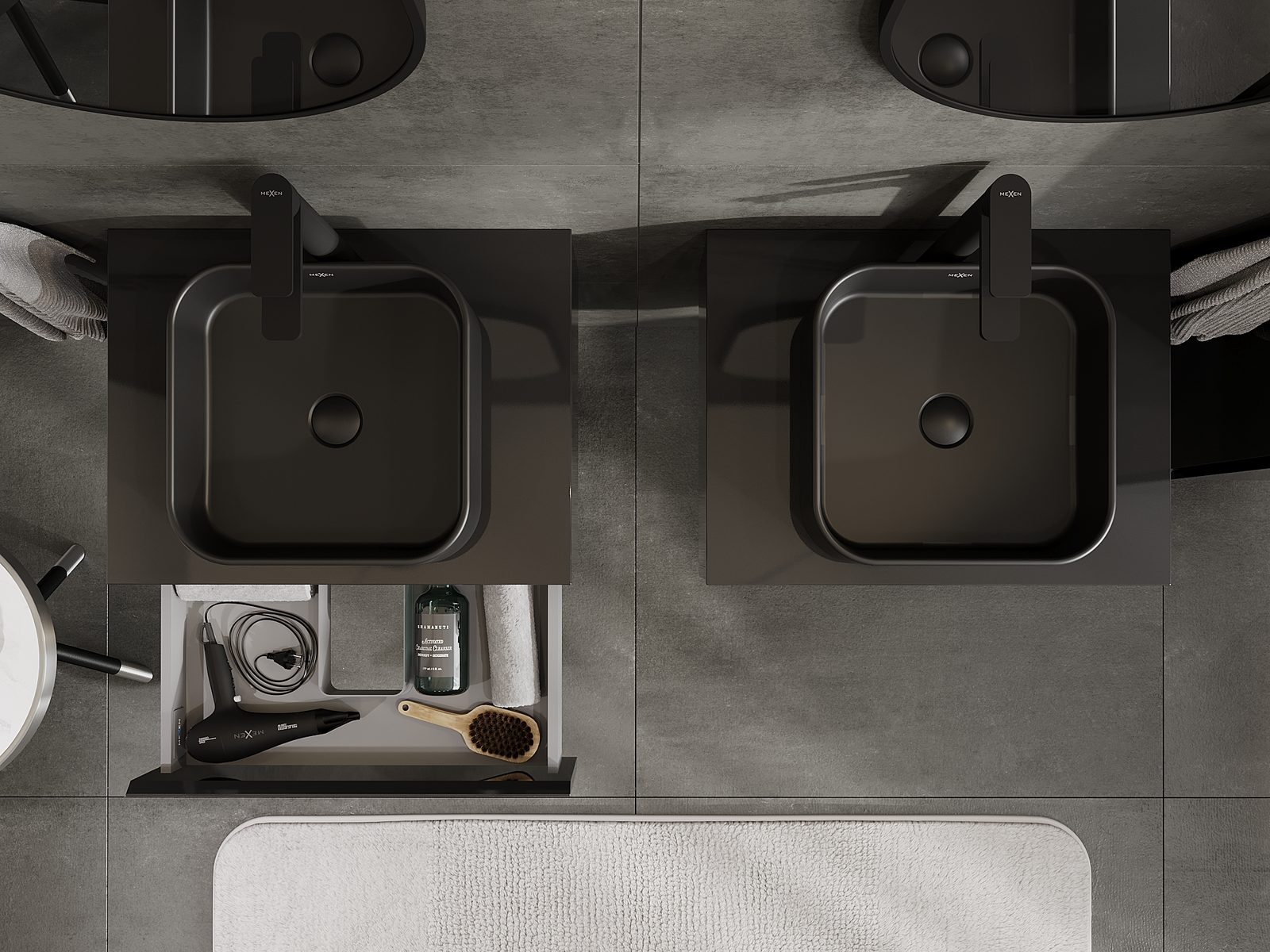 Mexen Orio badrumsskåp under tvättställ 60 cm, 1 låda, svart glans - 91A10-06023-1-BF70