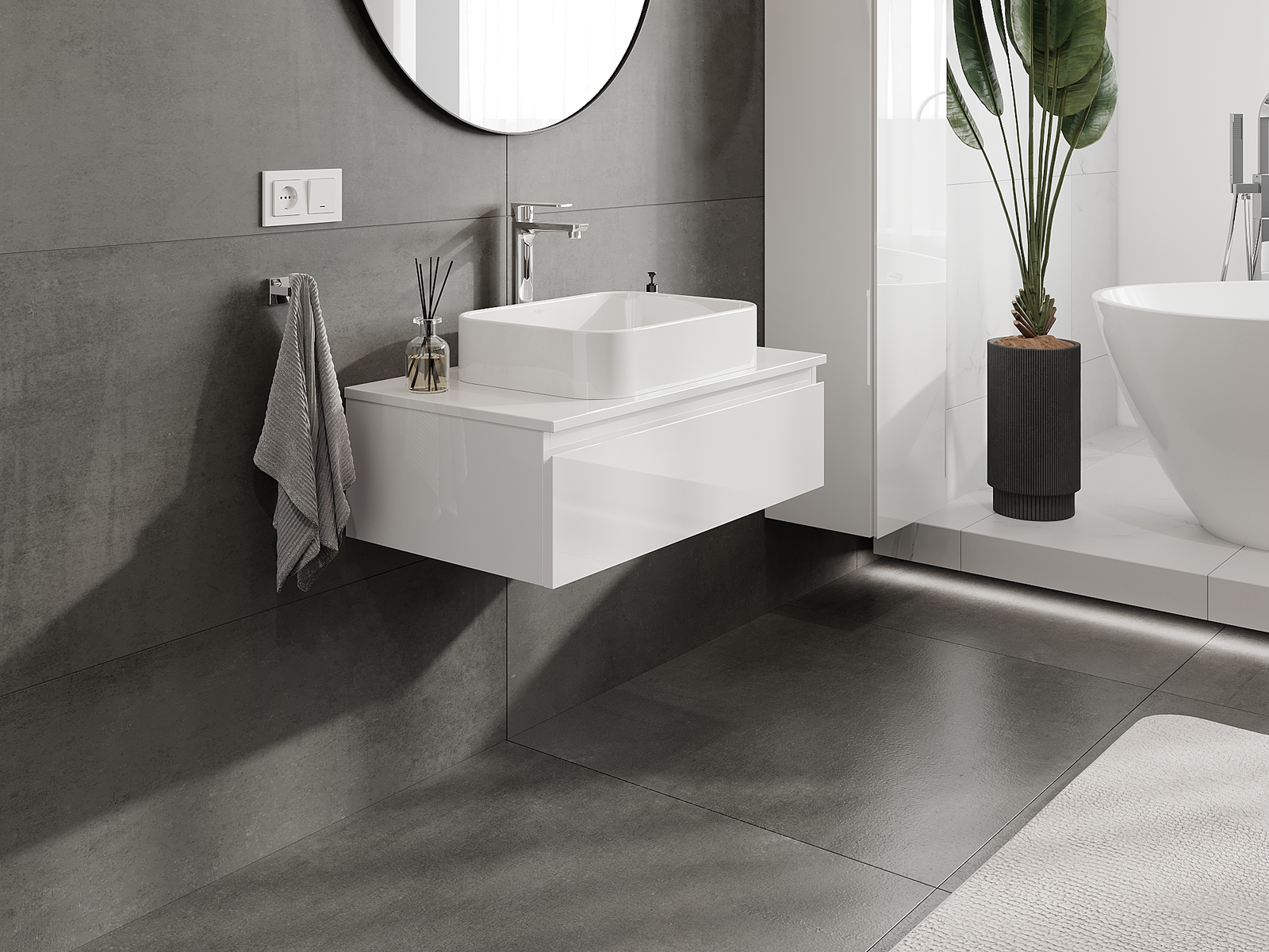 Våra modulära badrumsmöbler kan kombineras i olika färgkonfigurationer, vilket möjliggör fullständig personalisering. Du kan välja både utseende och funktioner för respektive delar, vilket gör att möblerna kan anpassas till dina egna stilistiska och funktionella preferenser.