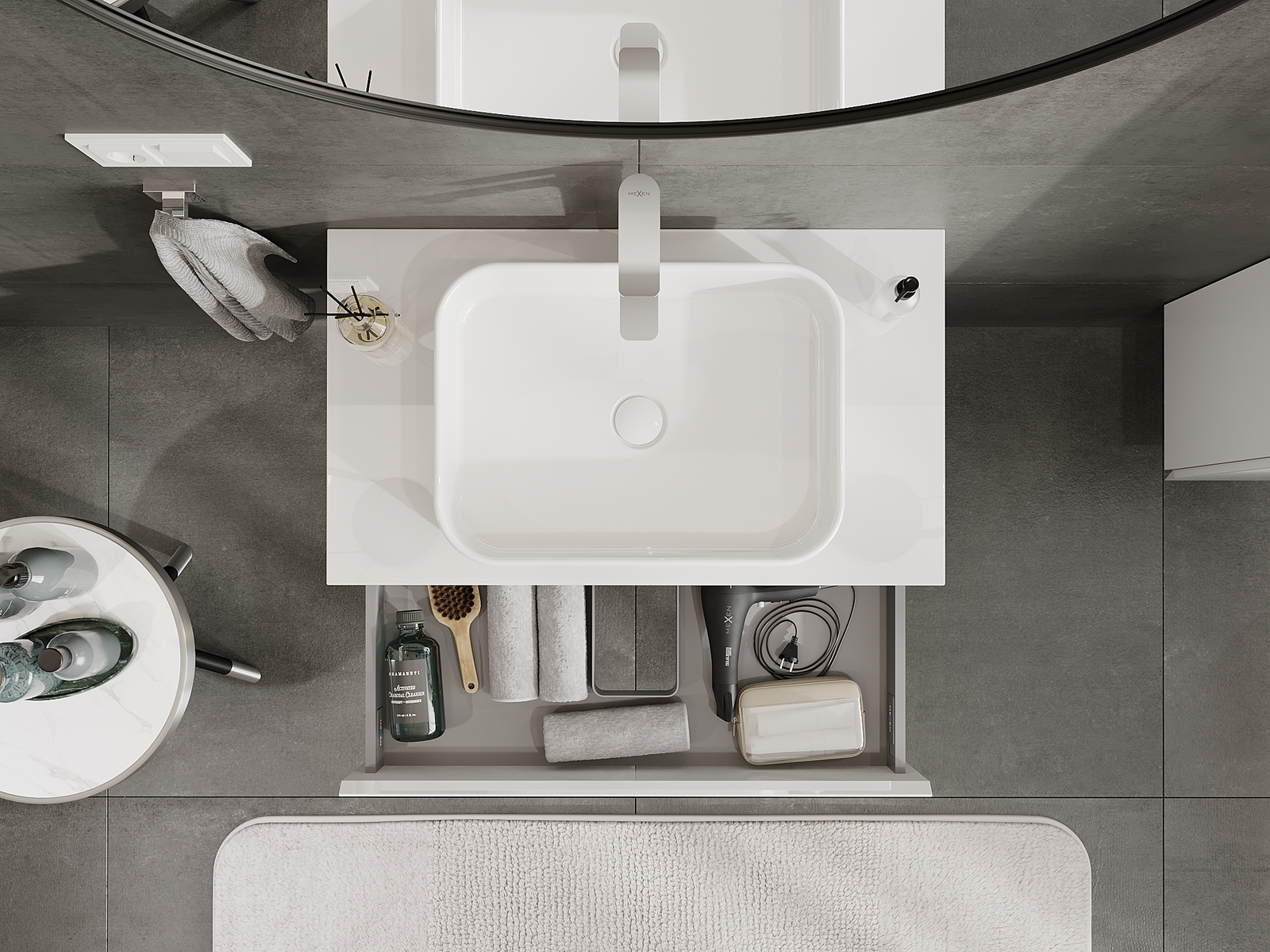 Mexen Orio badrumsskåp för under handfat 80 cm, 1 låda, vit högblank - 91A10-08023-1-BF00