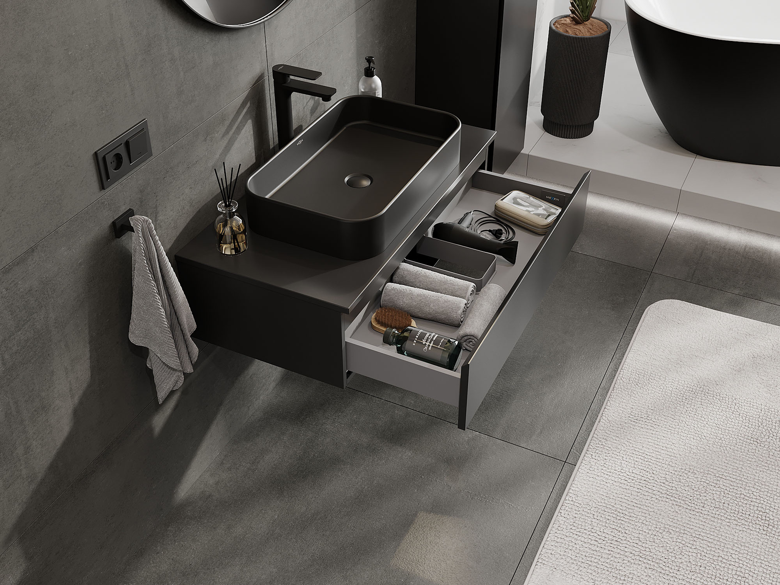 Mexen Orio badrumsskåp under tvättställ 90 cm, 1 låda, svart matt - 91A10-09023-1-BF71