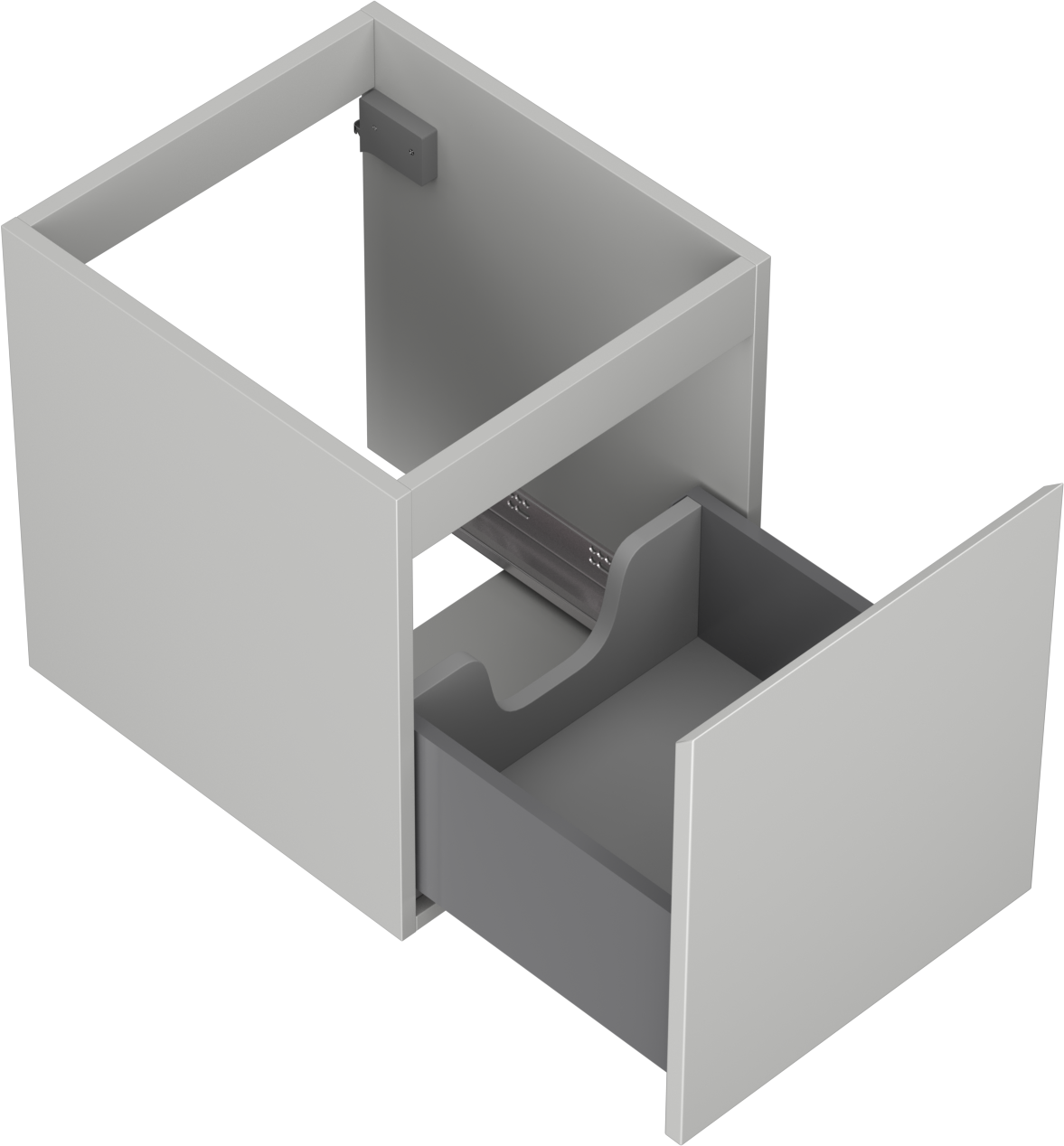 Utskärningen i lådan är utformad på ett sådant sätt att den rymmer vattenlåset som är nödvändigt i tvättställsinstallationer. Tack vare detta kan möbeln installeras fullt ut funktionellt, utan att behöva avstå från utrymme i lådan för installationen.