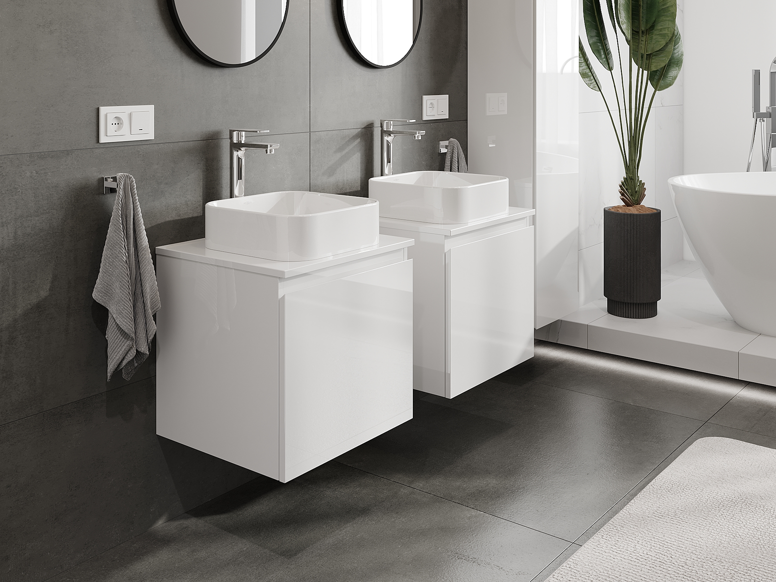 Våra modulära badrumsmöbler kan kombineras i olika färgkonfigurationer, vilket möjliggör fullständig personalisering. Du kan välja både utseende och funktioner för respektive delar, vilket gör att möblerna kan anpassas till dina egna stilistiska och funktionella preferenser.