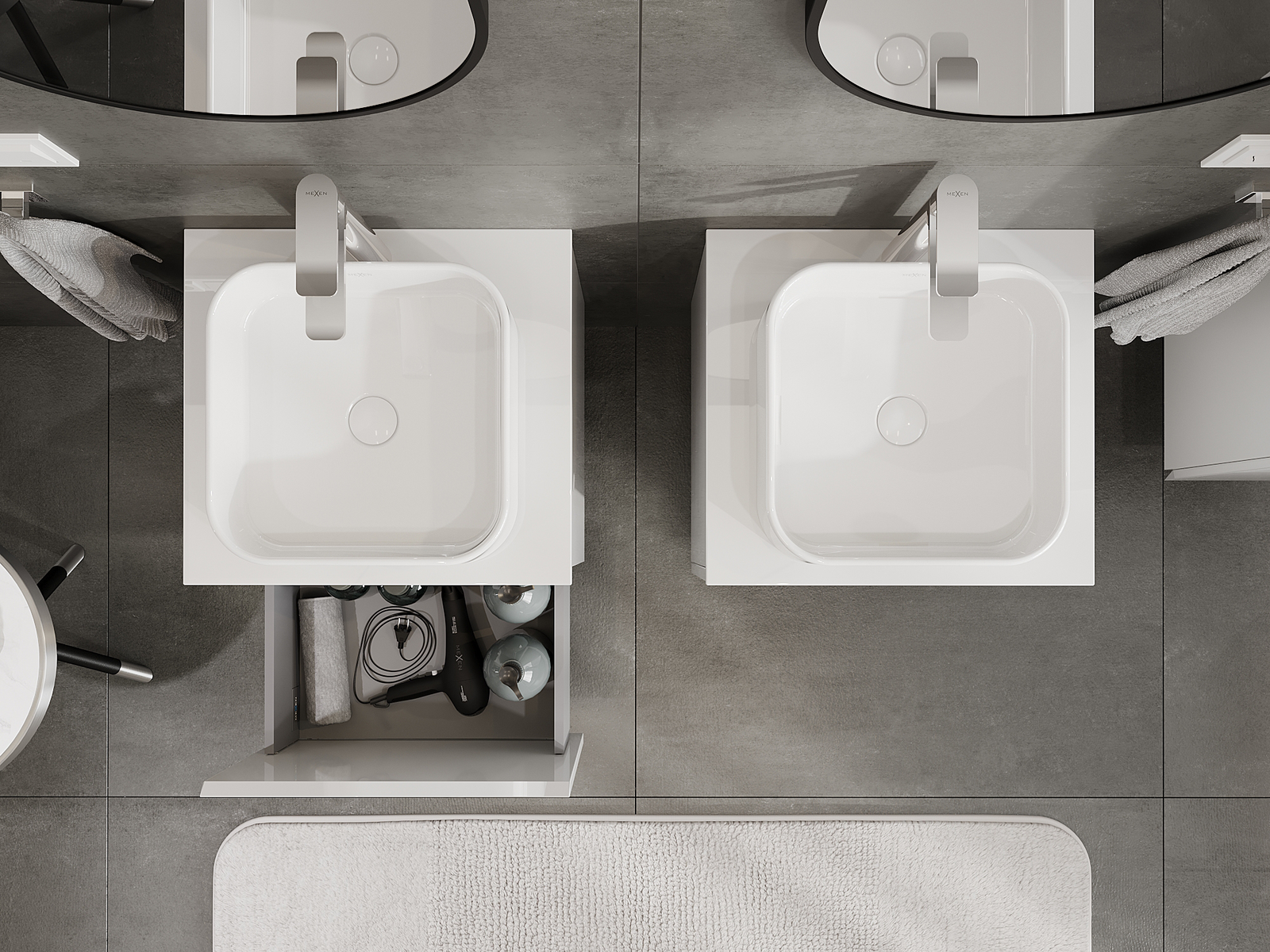 Mexen Orio badrumsskåp under tvättställ 50 cm, 1 låda, vit hög glans - 91A10-05047-1-BF00