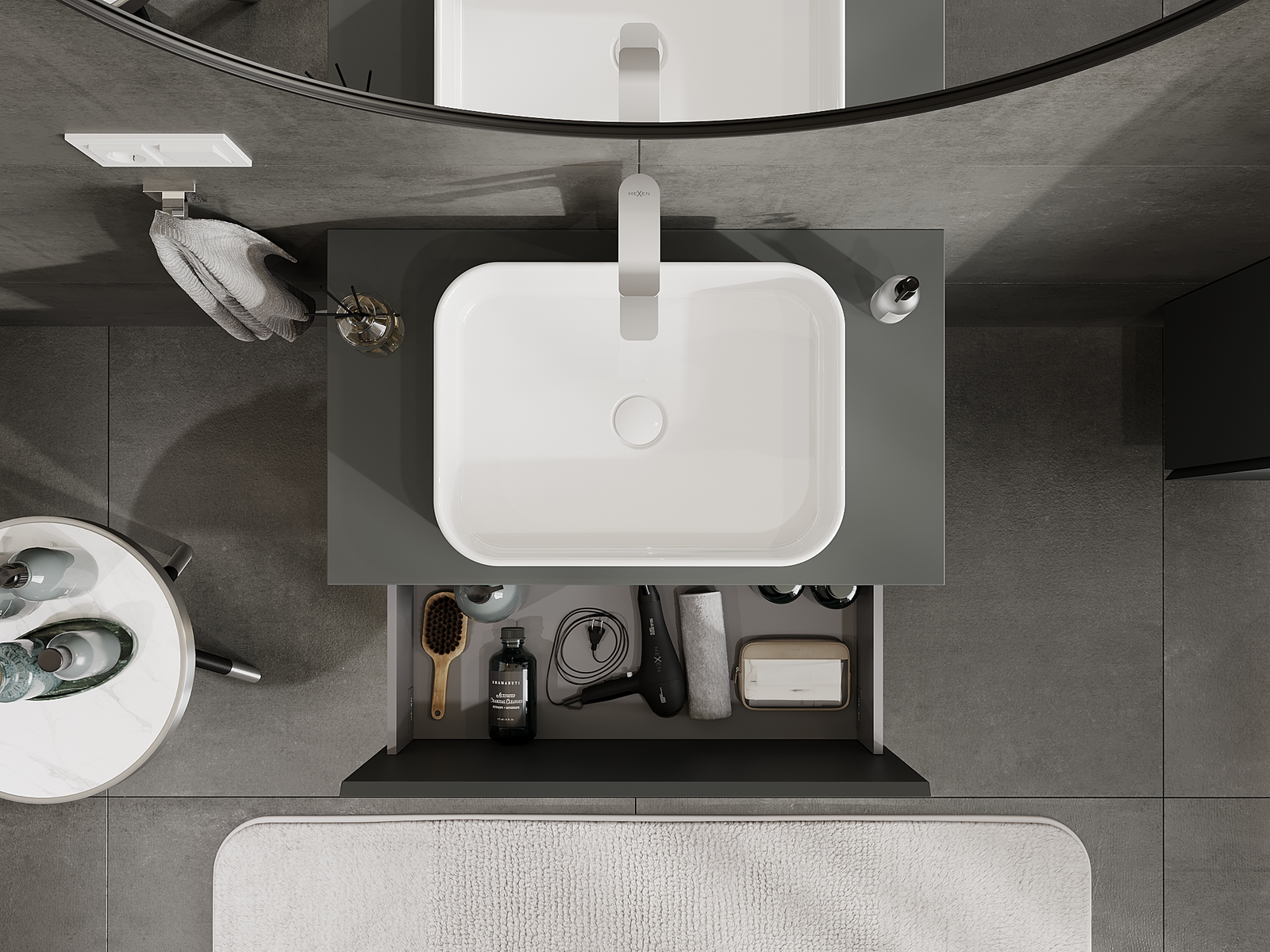 Mexen Orio badrumsskåp under tvättställ 80 cm, 1 låda, grafit matt - 91A10-08047-1-BF66