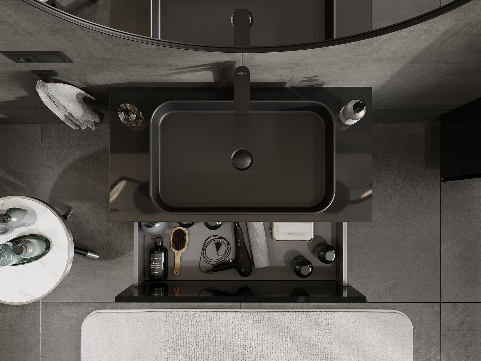 Mexen Orio badrumsskåp under handfat 90 cm, 1 låda, svart högglans - 91A10-09047-1-BF70