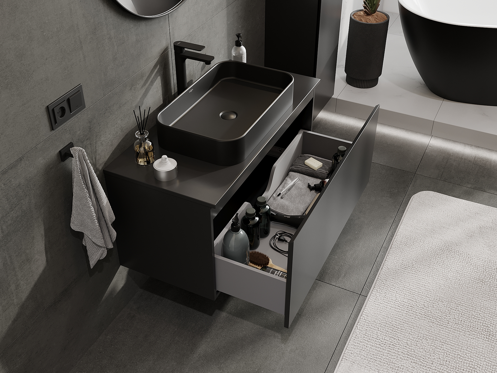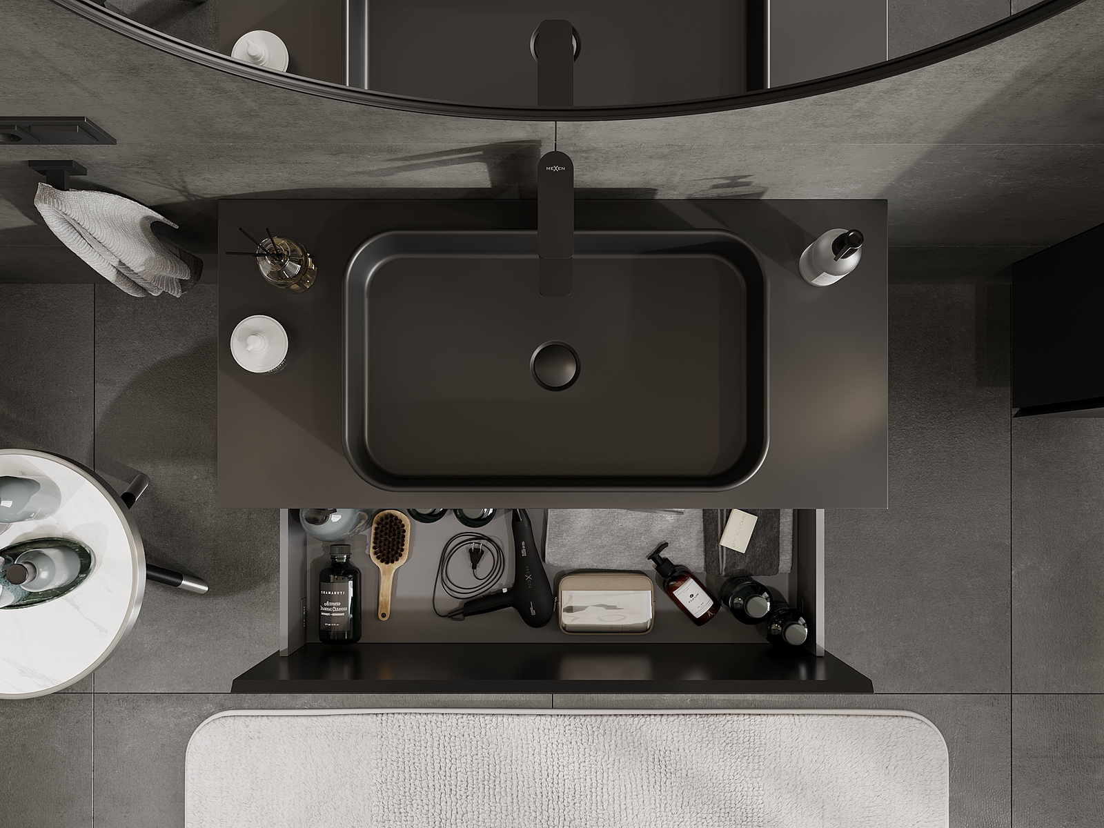 Mexen Orio badrumsskåp under tvättställ 100 cm, 1 låda, svart matt - 91A10-10047-1-BF71