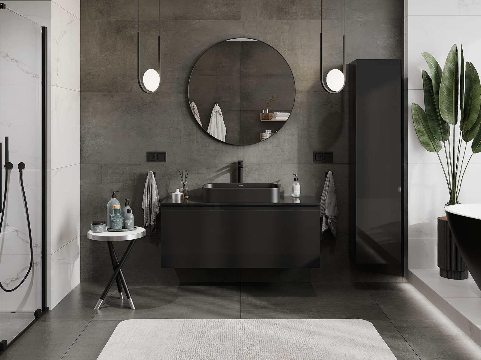 Mexen Orio badrumsskåp under tvättställ 120 cm, 1 låda, svart högglans - 91A10-12047-1-BF70