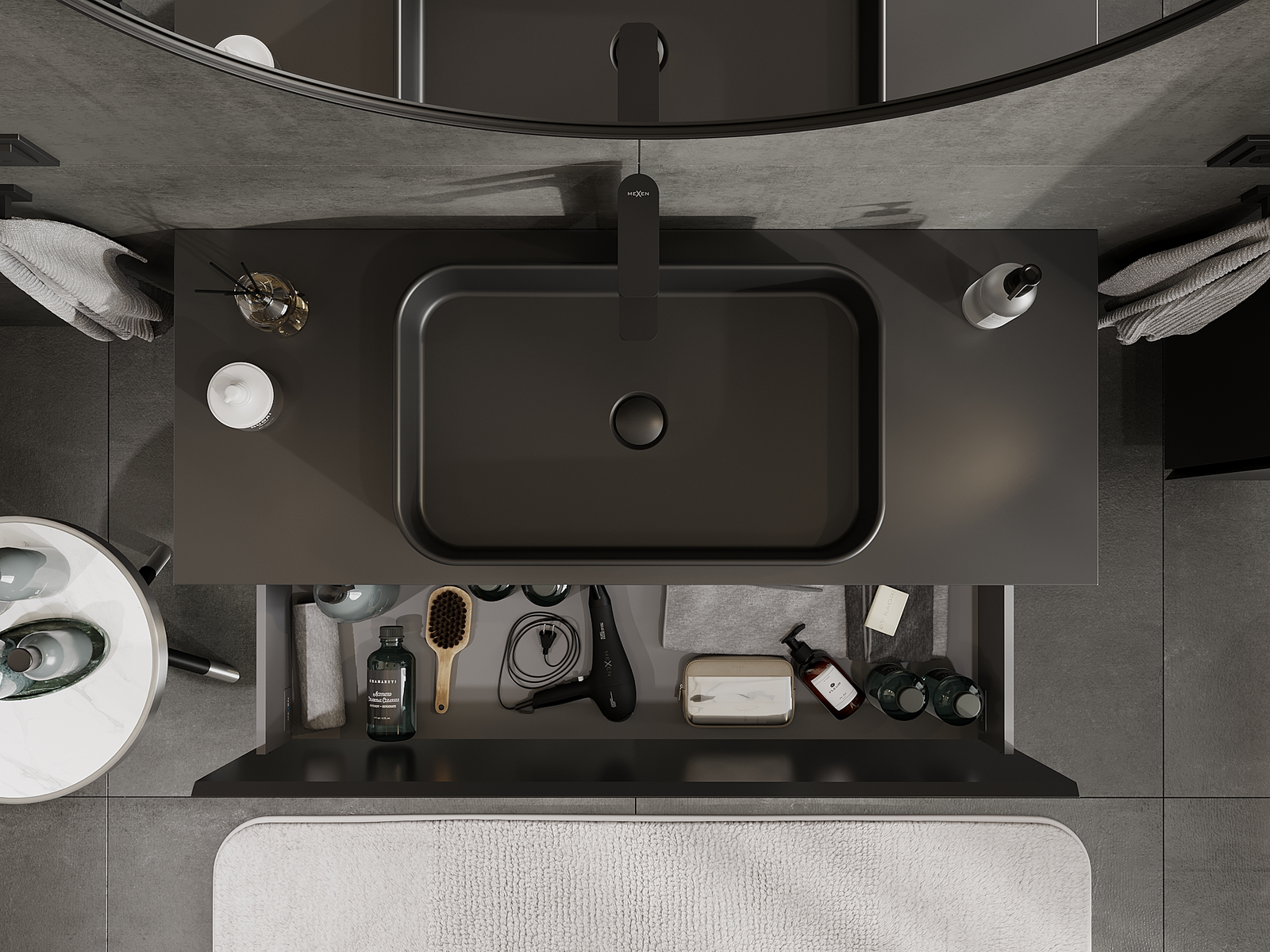 Mexen Orio badrumsskåp under tvättställ 120 cm, 1 låda, svart matt - 91A10-12047-1-BF71
