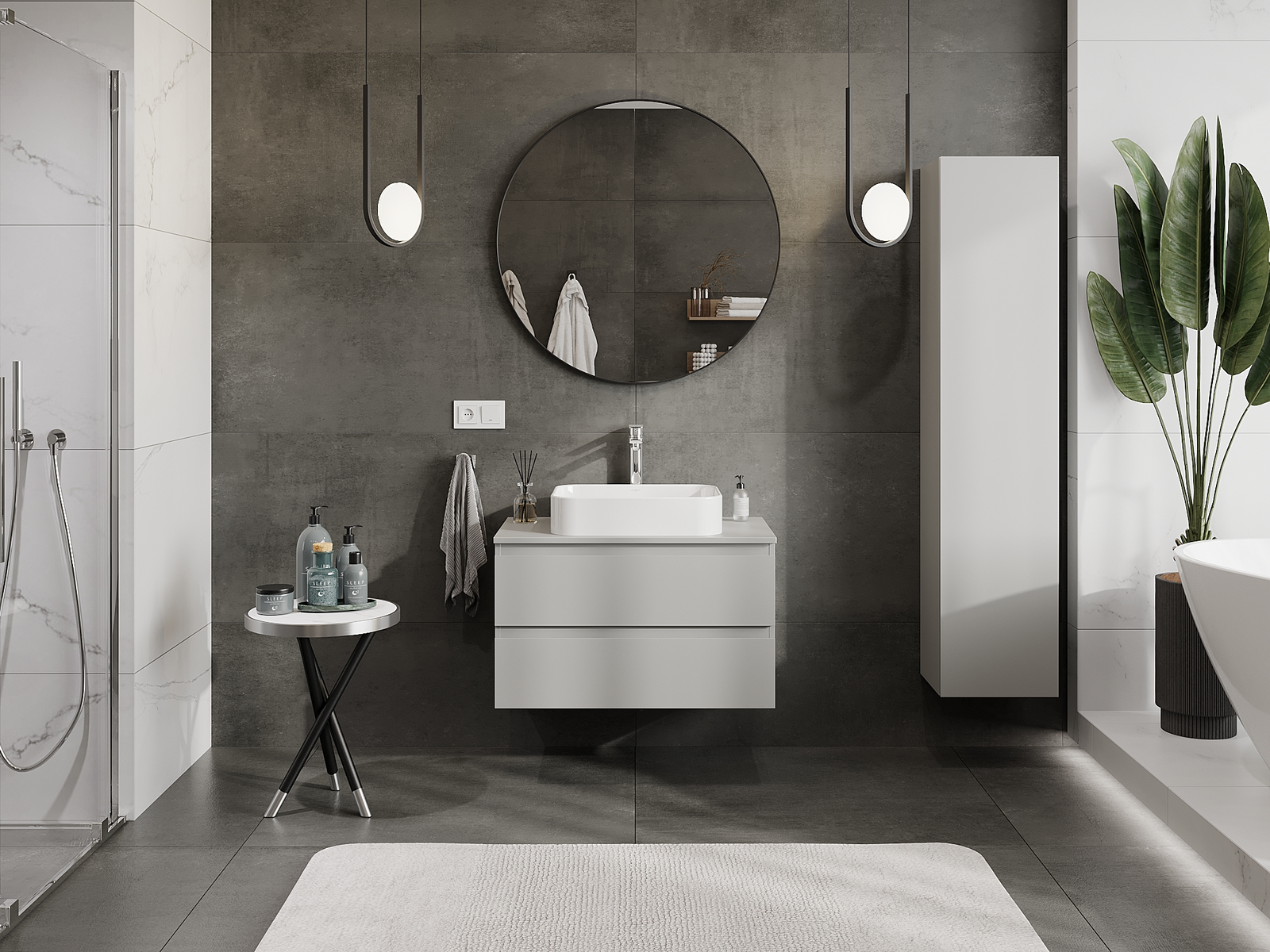 Våra modulära badrumsmöbler kan kombineras i olika färgkonfigurationer, vilket möjliggör fullständig personalisering. Du kan välja både utseende och funktioner för respektive delar, vilket gör att möblerna kan anpassas till dina egna stilistiska och funktionella preferenser.