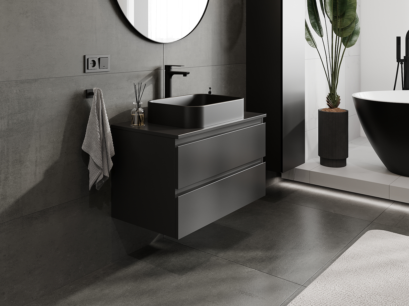 Våra modulära badrumsmöbler kan kombineras i olika färgkonfigurationer, vilket möjliggör fullständig personalisering. Du kan välja både utseende och funktioner för respektive delar, vilket gör att möblerna kan anpassas till dina egna stilistiska och funktionella preferenser.