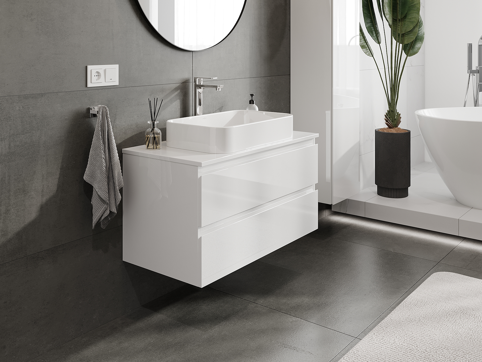 Våra modulära badrumsmöbler kan kombineras i olika färgkonfigurationer, vilket möjliggör fullständig personalisering. Du kan välja både utseende och funktioner för respektive delar, vilket gör att möblerna kan anpassas till dina egna stilistiska och funktionella preferenser.