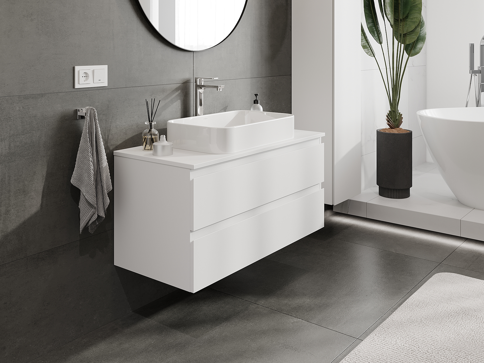 Våra modulära badrumsmöbler kan kombineras i olika färgkonfigurationer, vilket möjliggör fullständig personalisering. Du kan välja både utseende och funktioner för respektive delar, vilket gör att möblerna kan anpassas till dina egna stilistiska och funktionella preferenser.