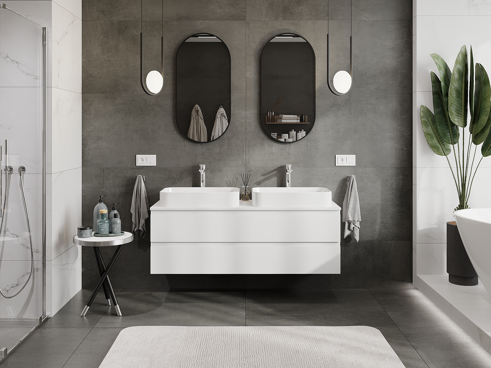 Våra modulära badrumsmöbler kan kombineras i olika färgkonfigurationer, vilket möjliggör fullständig personalisering. Du kan välja både utseende och funktioner för respektive delar, vilket gör att möblerna kan anpassas till dina egna stilistiska och funktionella preferenser.