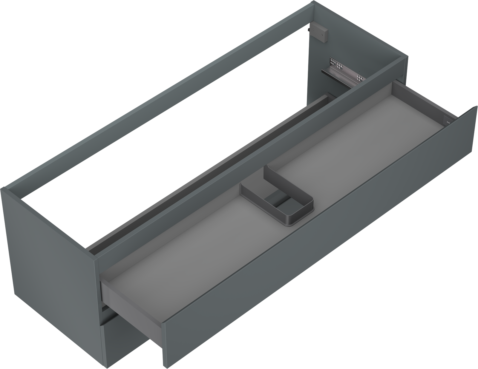 Utskärningen i lådan är utformad på ett sådant sätt att den rymmer vattenlåset som är nödvändigt i tvättställsinstallationer. Tack vare detta kan möbeln installeras fullt ut funktionellt, utan att behöva avstå från utrymme i lådan för installationen.
