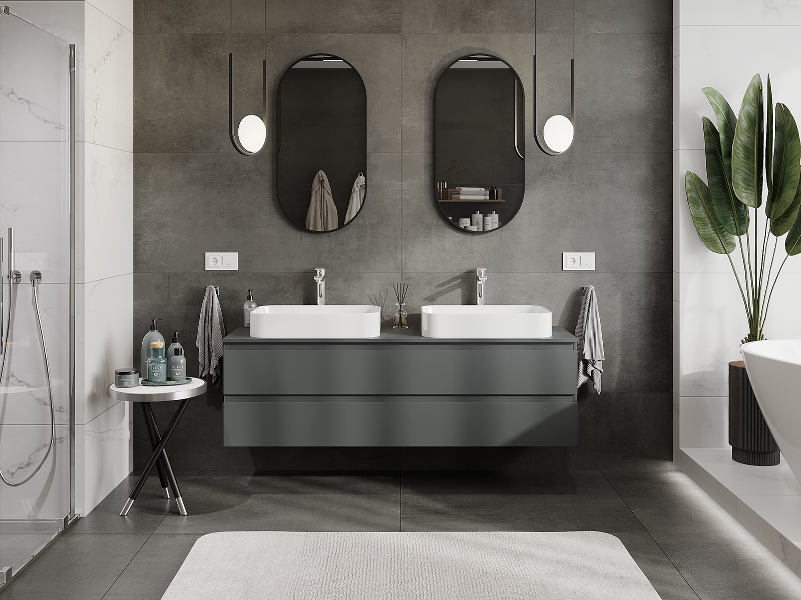 Våra modulära badrumsmöbler kan kombineras i olika färgkonfigurationer, vilket möjliggör fullständig personalisering. Du kan välja både utseende och funktioner för respektive delar, vilket gör att möblerna kan anpassas till dina egna stilistiska och funktionella preferenser.