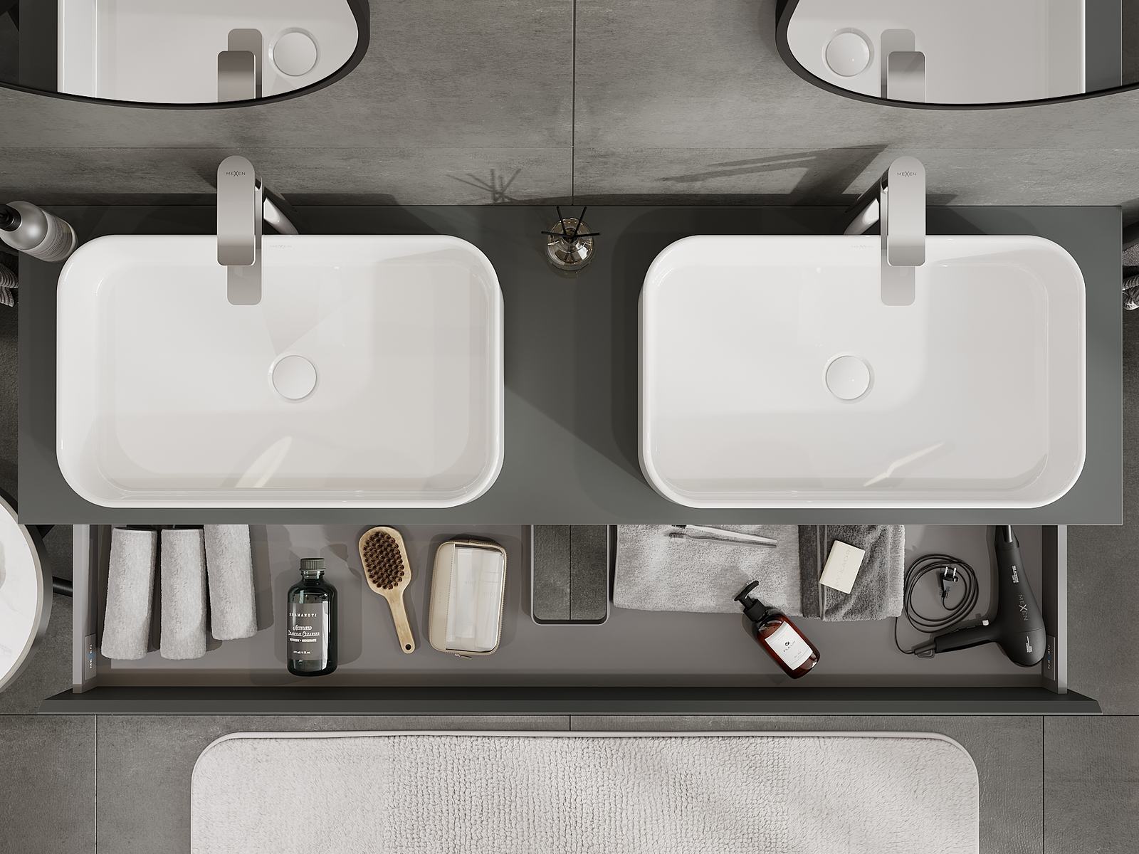 Mexen Orio badrumsskåp under tvättställ 160 cm, 2 lådor, matt grafit - 91A10-16047-2-BFF66