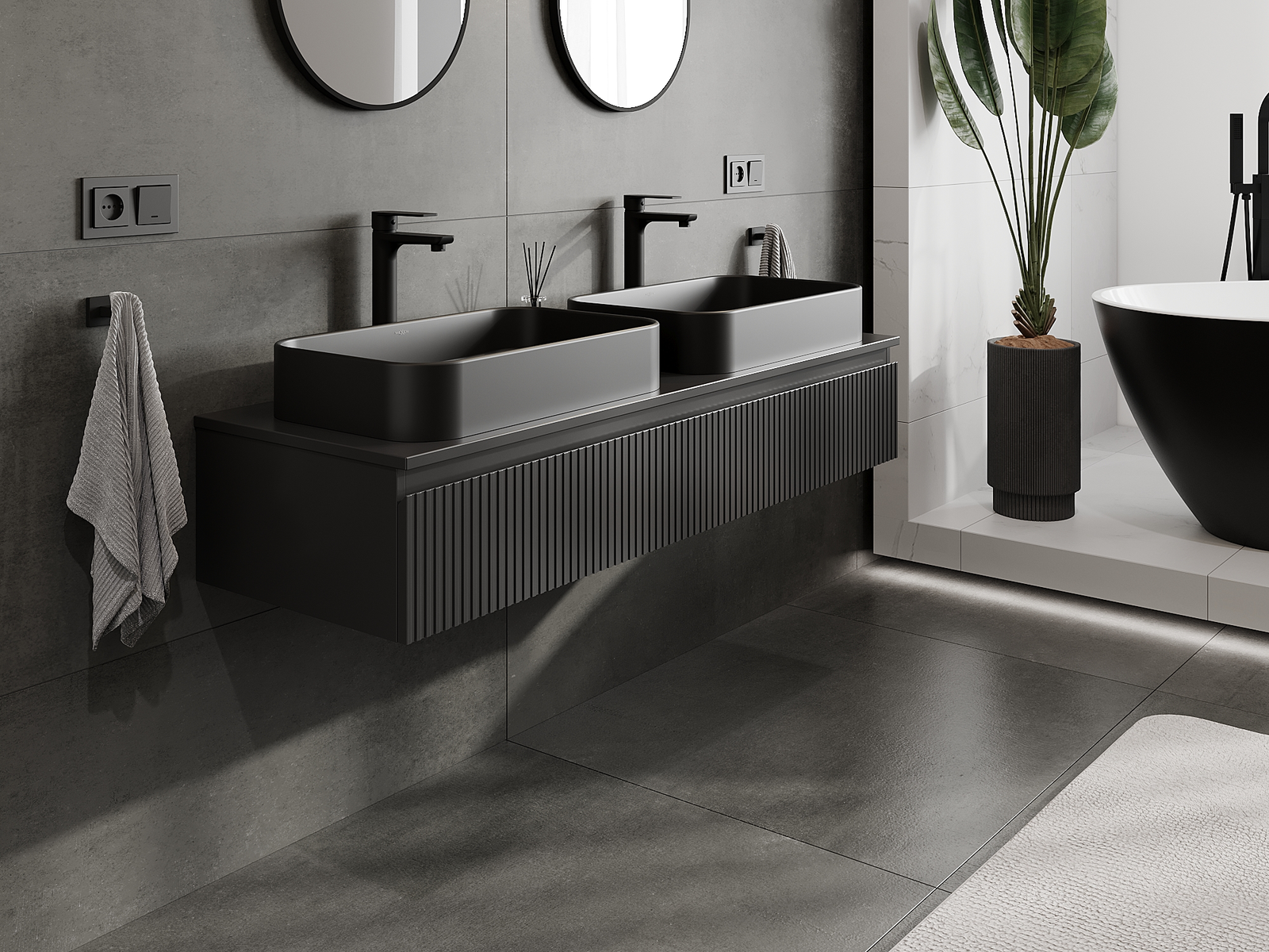 Mexen Rivel badrumsskåp under tvättställ 140 cm, 1 låda, räfflad, svart matt - 91A20-14023-1-BF71