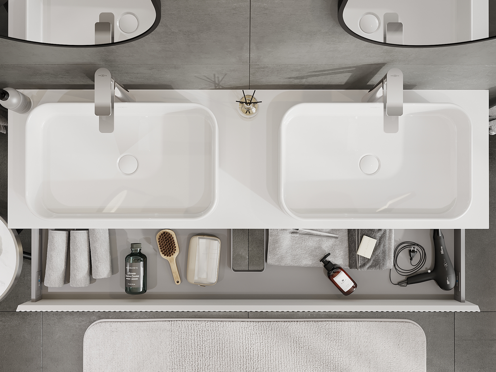 Mexen Rivel badrumsskåp under tvättställ 160 cm, 1 låda, spårad, vit matt - 91A20-16023-1-BF01