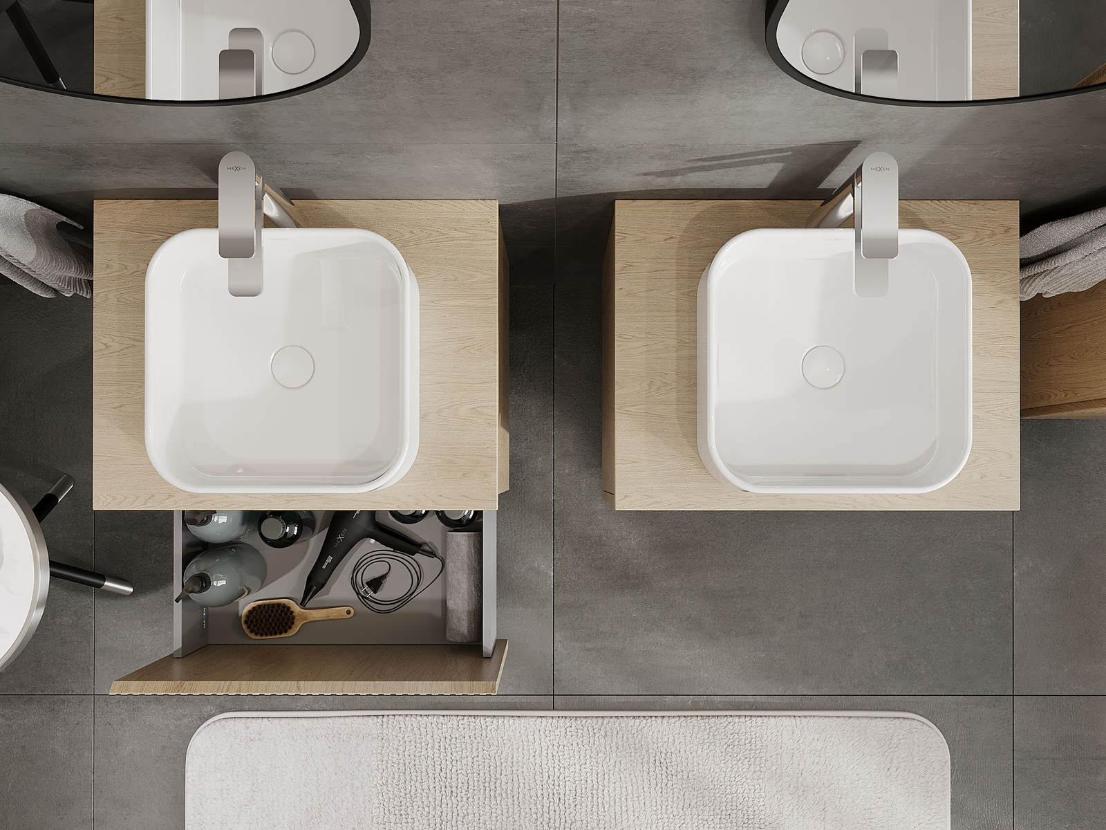 Våra modulära badrumsmöbler kan kombineras i olika färgkonfigurationer, vilket möjliggör fullständig personalisering. Du kan välja både utseende och funktioner för respektive delar, vilket gör att möblerna kan anpassas till dina egna stilistiska och funktionella preferenser.