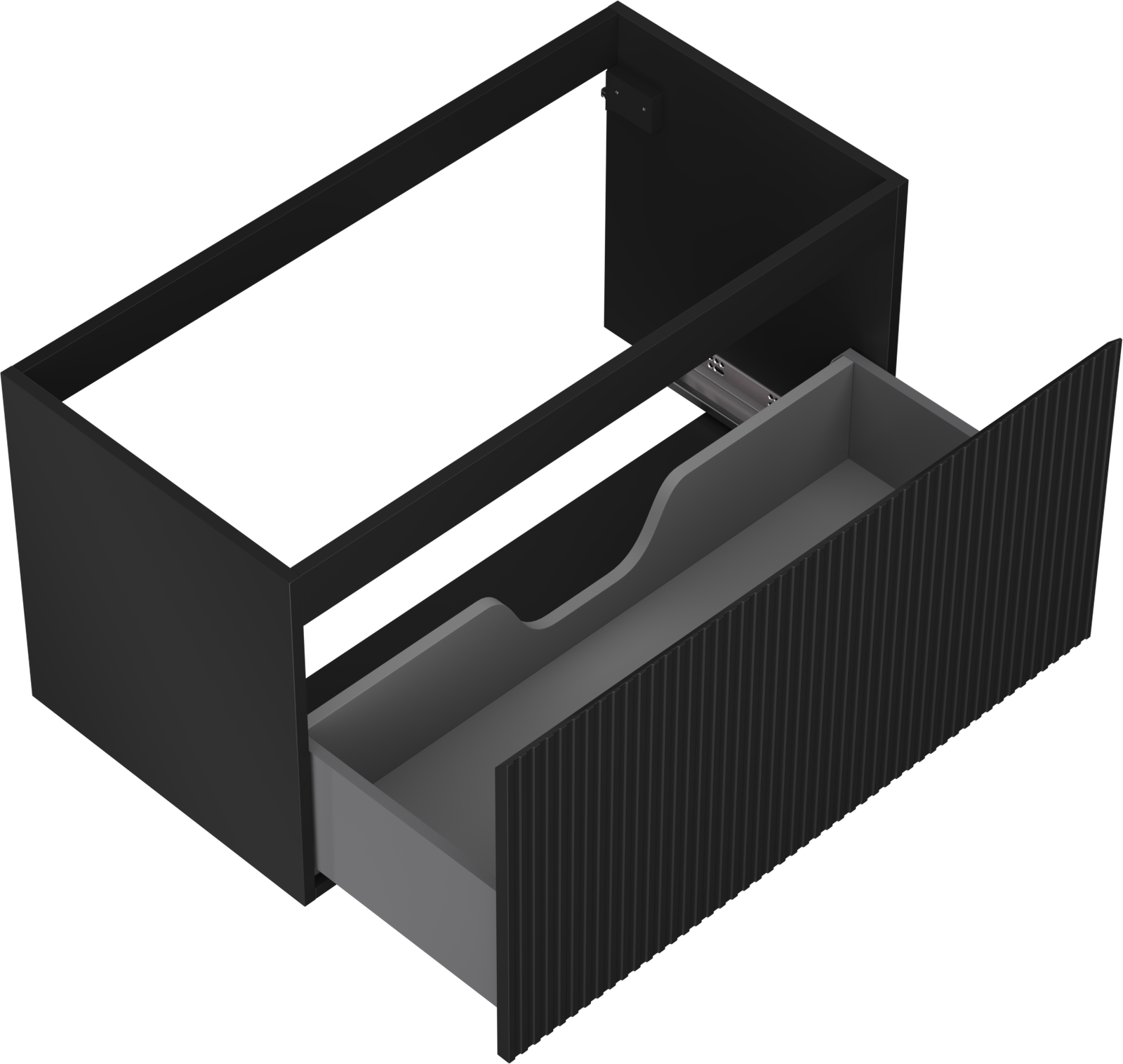 Utskärningen i lådan är utformad på ett sådant sätt att den rymmer vattenlåset som är nödvändigt i tvättställsinstallationer. Tack vare detta kan möbeln installeras fullt ut funktionellt, utan att behöva avstå från utrymme i lådan för installationen.