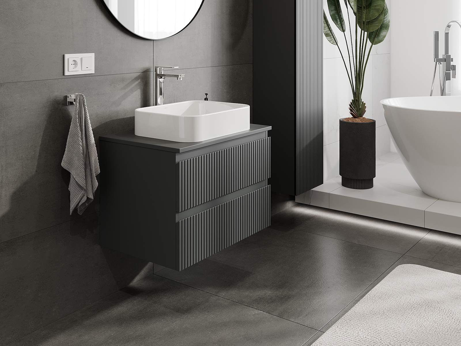 Våra modulära badrumsmöbler kan kombineras i olika färgkonfigurationer, vilket möjliggör fullständig personalisering. Du kan välja både utseende och funktioner för respektive delar, vilket gör att möblerna kan anpassas till dina egna stilistiska och funktionella preferenser.