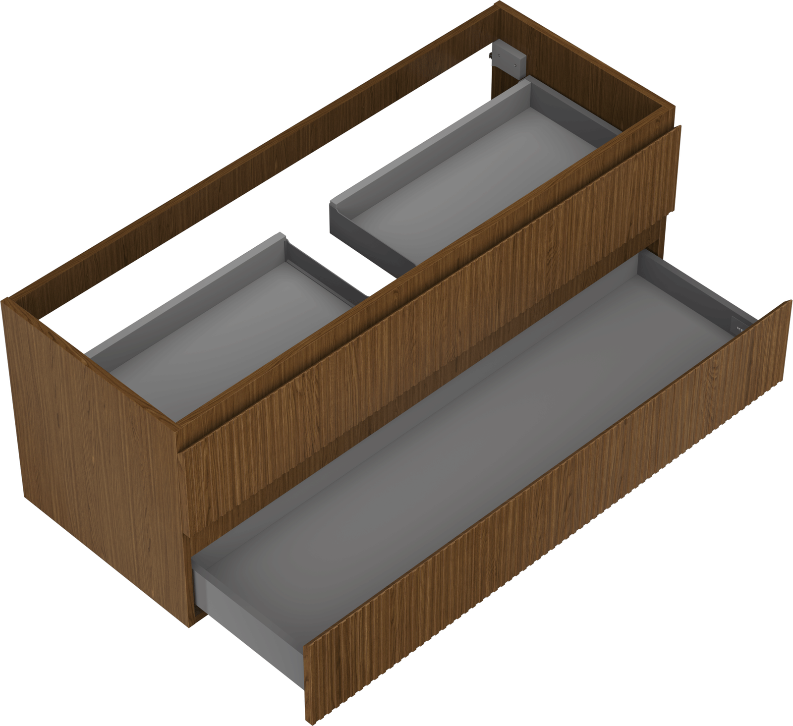 Mexen Rivel badrumsskåp under tvättställ 120 cm, 2 lådor, räfflad, valnöt - 91A20-12047-2-BFF86