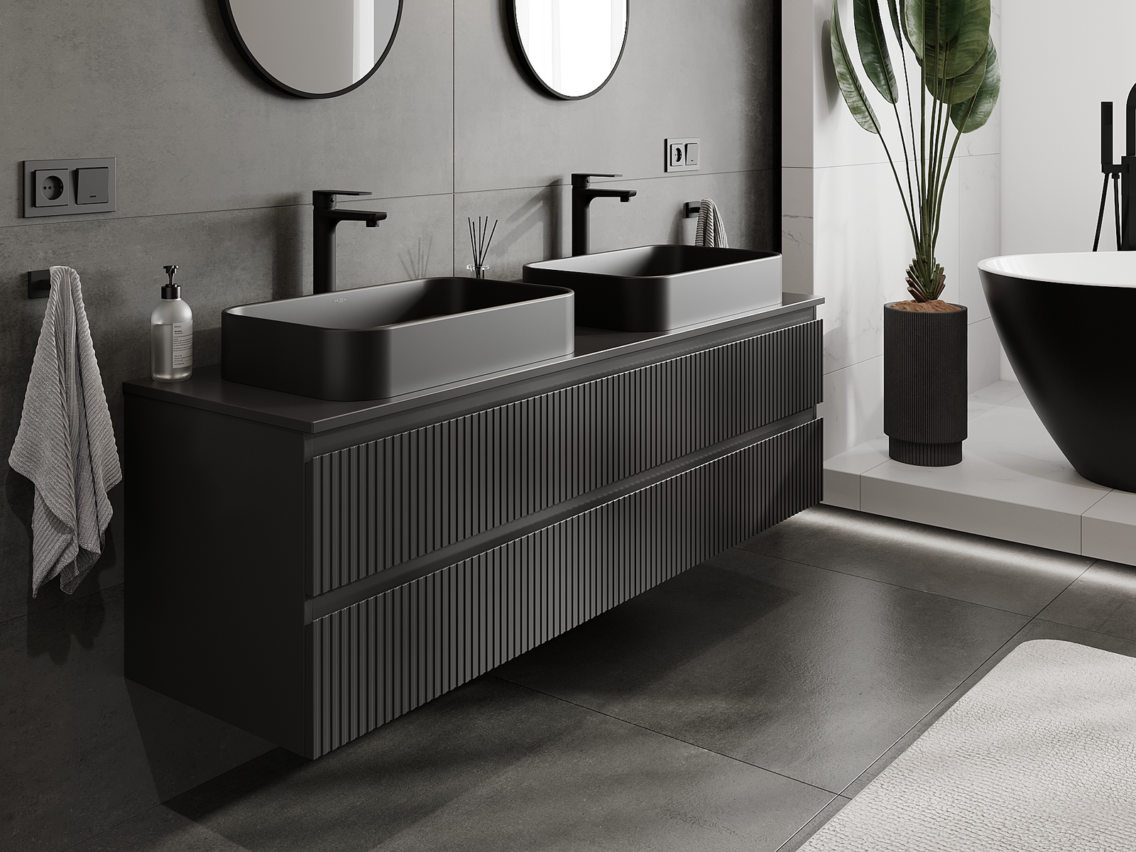 Våra modulära badrumsmöbler kan kombineras i olika färgkonfigurationer, vilket möjliggör fullständig personalisering. Du kan välja både utseende och funktioner för respektive delar, vilket gör att möblerna kan anpassas till dina egna stilistiska och funktionella preferenser.