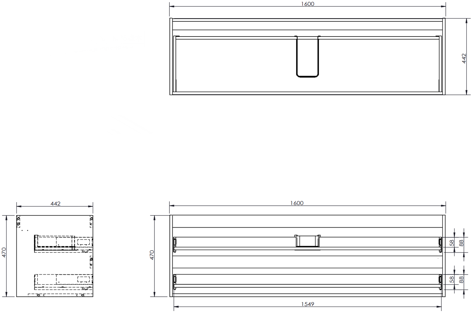 Utskärningen i lådan är utformad på ett sådant sätt att den rymmer vattenlåset som är nödvändigt i tvättställsinstallationer. Tack vare detta kan möbeln installeras fullt ut funktionellt, utan att behöva avstå från utrymme i lådan för installationen.