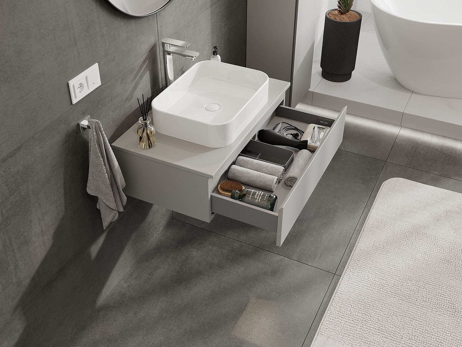 Mexen Orio badrumsskåp under tvättställ 80 cm med bänk, 1 låda, grå matt - 91A10-08023-1-BFC62