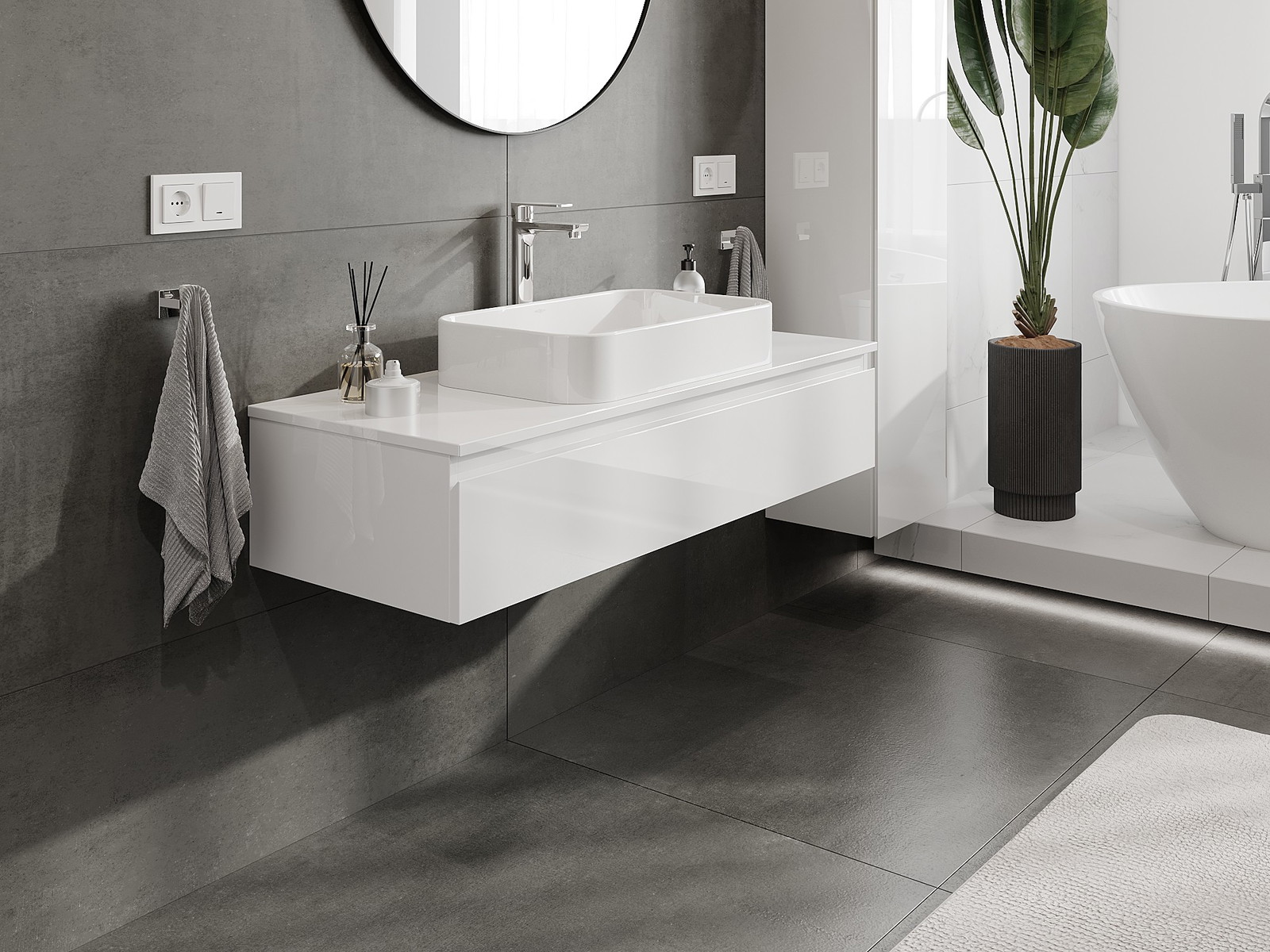 Våra modulära badrumsmöbler kan kombineras i olika färgkonfigurationer, vilket möjliggör fullständig personalisering. Du kan välja både utseende och funktioner för respektive delar, vilket gör att möblerna kan anpassas till dina egna stilistiska och funktionella preferenser.