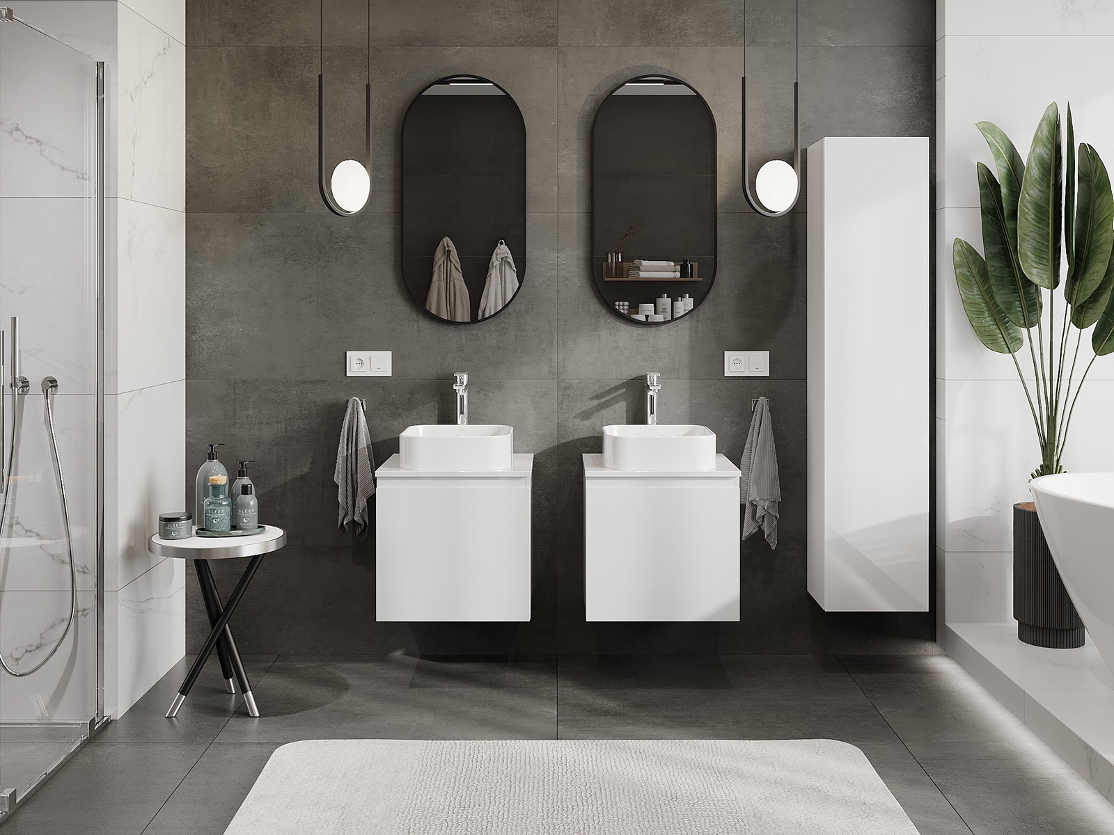 Våra modulära badrumsmöbler kan kombineras i olika färgkonfigurationer, vilket möjliggör fullständig personalisering. Du kan välja både utseende och funktioner för respektive delar, vilket gör att möblerna kan anpassas till dina egna stilistiska och funktionella preferenser.