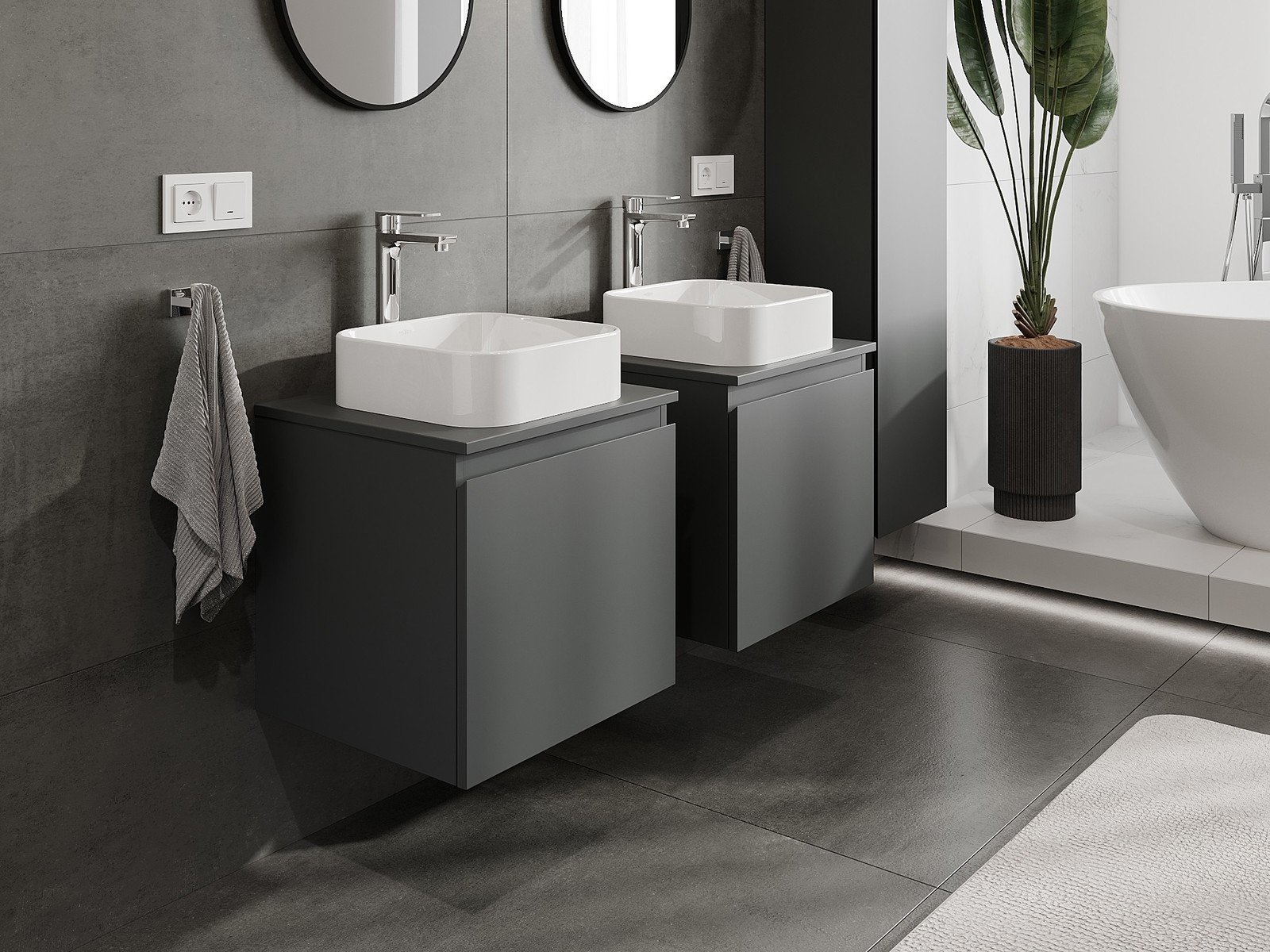 Våra modulära badrumsmöbler kan kombineras i olika färgkonfigurationer, vilket möjliggör fullständig personalisering. Du kan välja både utseende och funktioner för respektive delar, vilket gör att möblerna kan anpassas till dina egna stilistiska och funktionella preferenser.