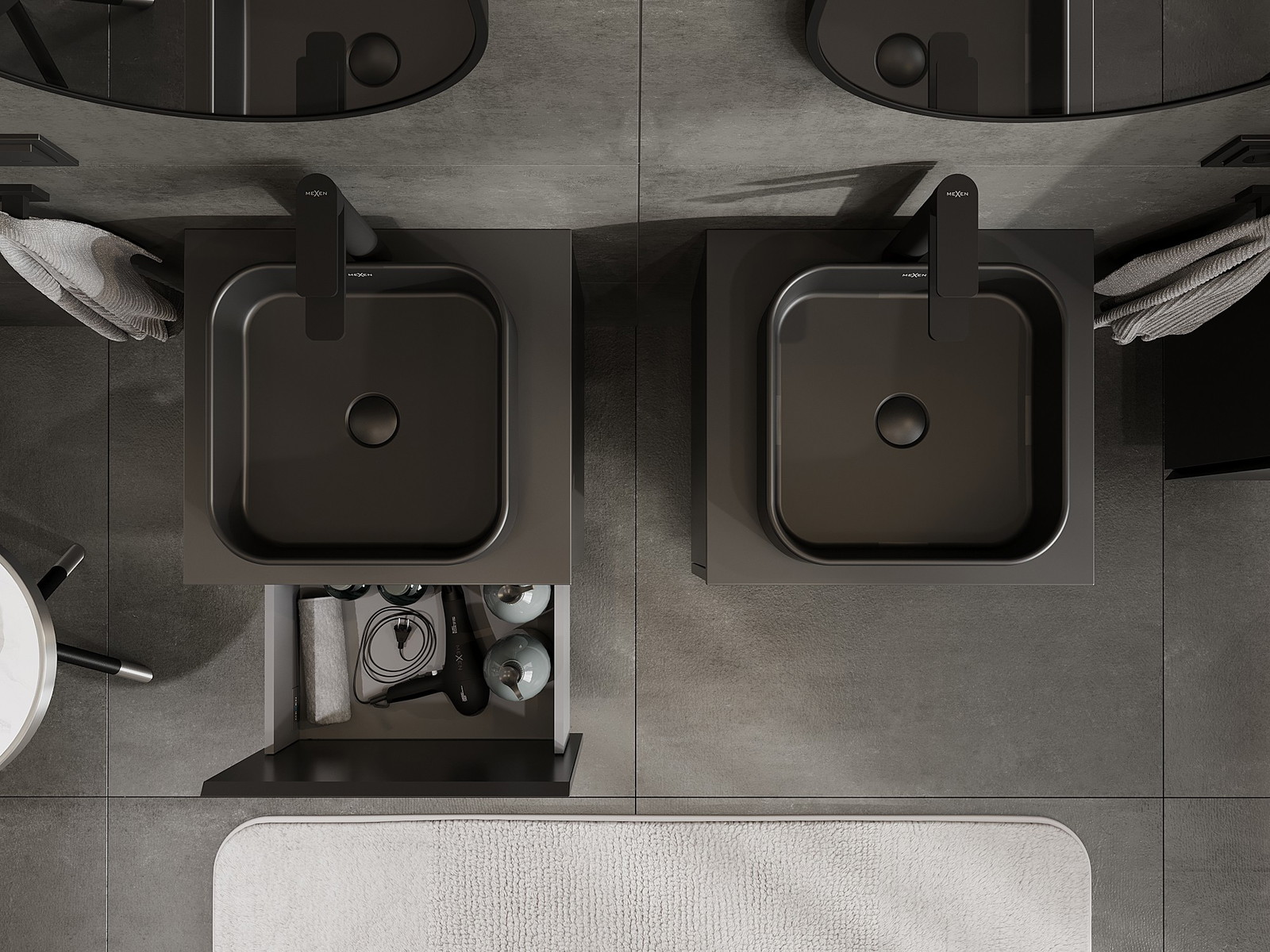 Mexen Orio badrumsskåp under handfat 50 cm med bänkskiva, 1 låda, svart matt - 91A10-05047-1-BFC71