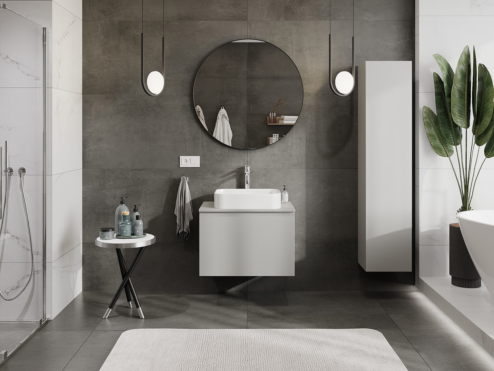 Våra modulära badrumsmöbler kan kombineras i olika färgkonfigurationer, vilket möjliggör fullständig personalisering. Du kan välja både utseende och funktioner för respektive delar, vilket gör att möblerna kan anpassas till dina egna stilistiska och funktionella preferenser.