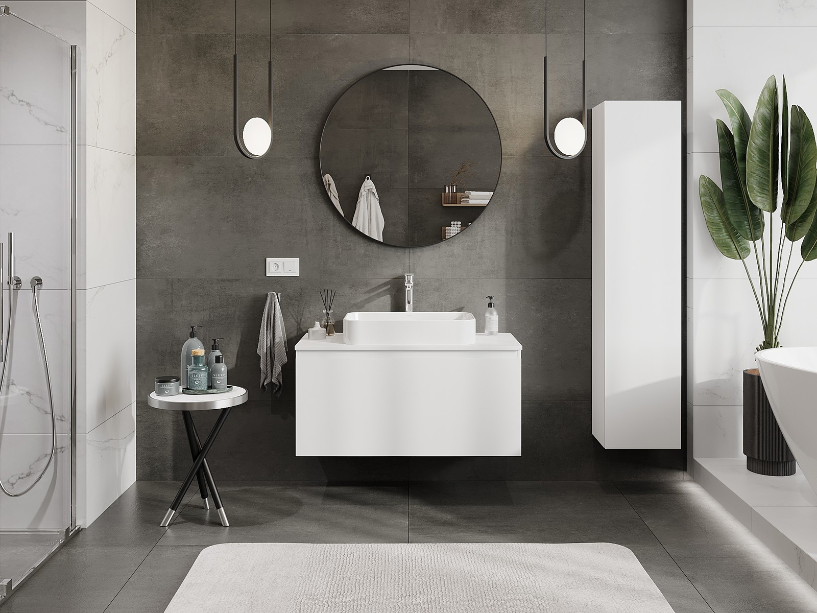 Våra modulära badrumsmöbler kan kombineras i olika färgkonfigurationer, vilket möjliggör fullständig personalisering. Du kan välja både utseende och funktioner för respektive delar, vilket gör att möblerna kan anpassas till dina egna stilistiska och funktionella preferenser.