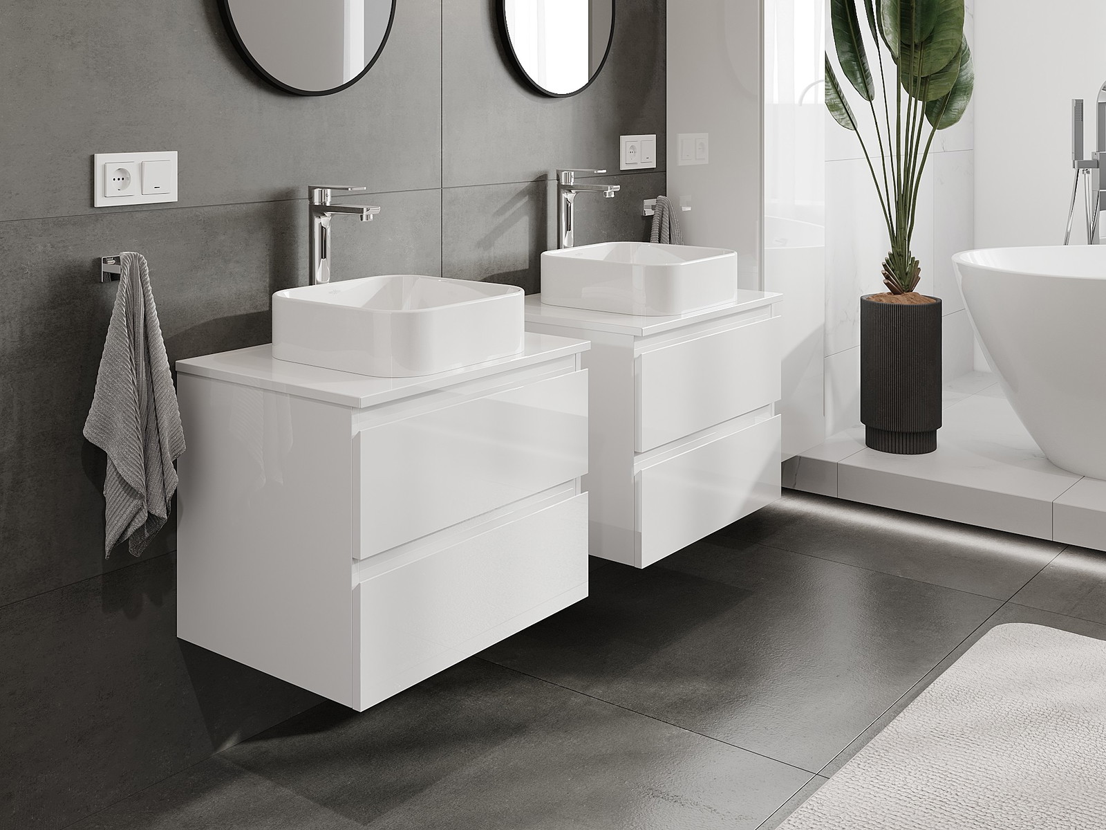 Mexen Orio badrumsskåp under tvättställ 60 cm med bänkskiva, 2 lådor, vit glans - 91A10-06047-2-BFFC00