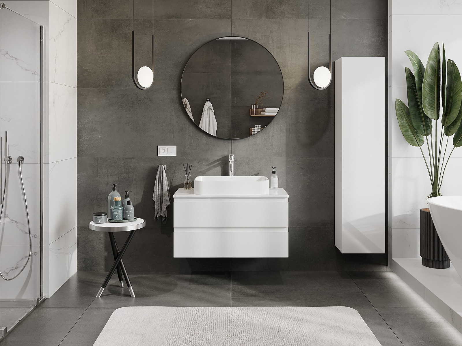 Våra modulära badrumsmöbler kan kombineras i olika färgkonfigurationer, vilket möjliggör fullständig personalisering. Du kan välja både utseende och funktioner för respektive delar, vilket gör att möblerna kan anpassas till dina egna stilistiska och funktionella preferenser.