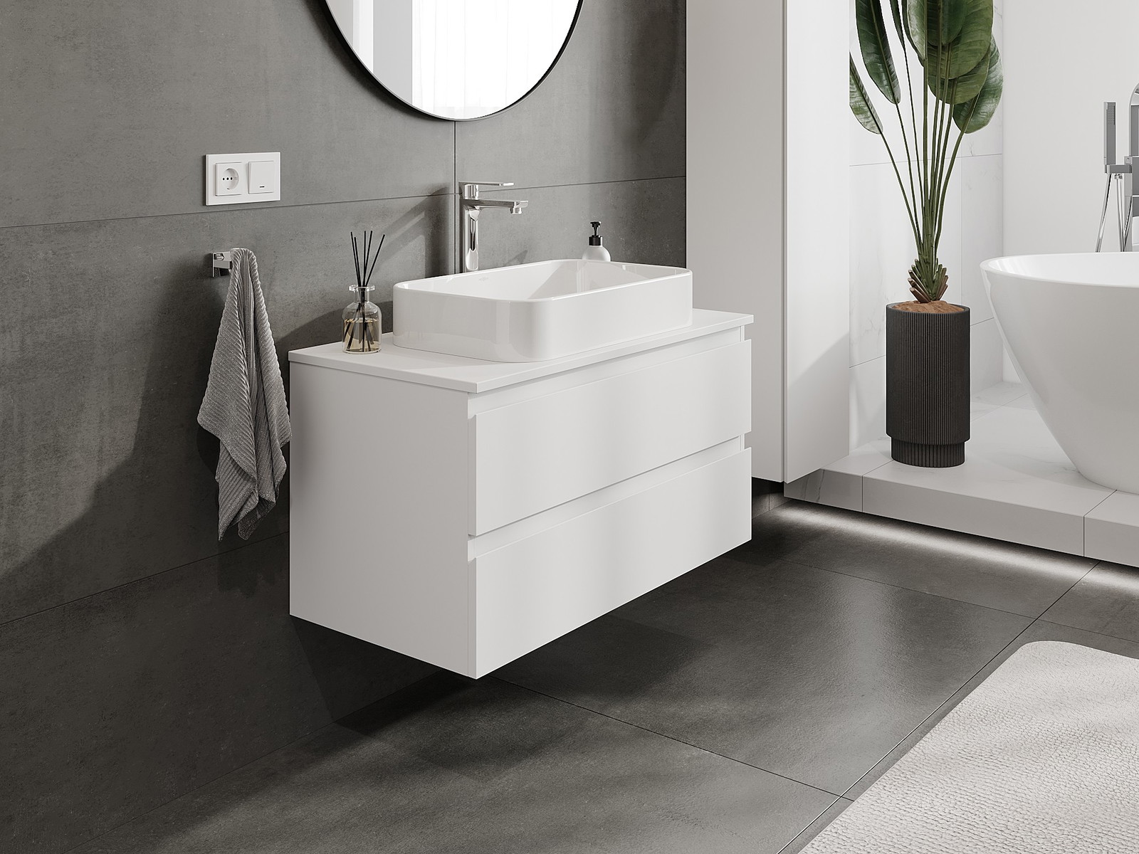 Våra modulära badrumsmöbler kan kombineras i olika färgkonfigurationer, vilket möjliggör fullständig personalisering. Du kan välja både utseende och funktioner för respektive delar, vilket gör att möblerna kan anpassas till dina egna stilistiska och funktionella preferenser.