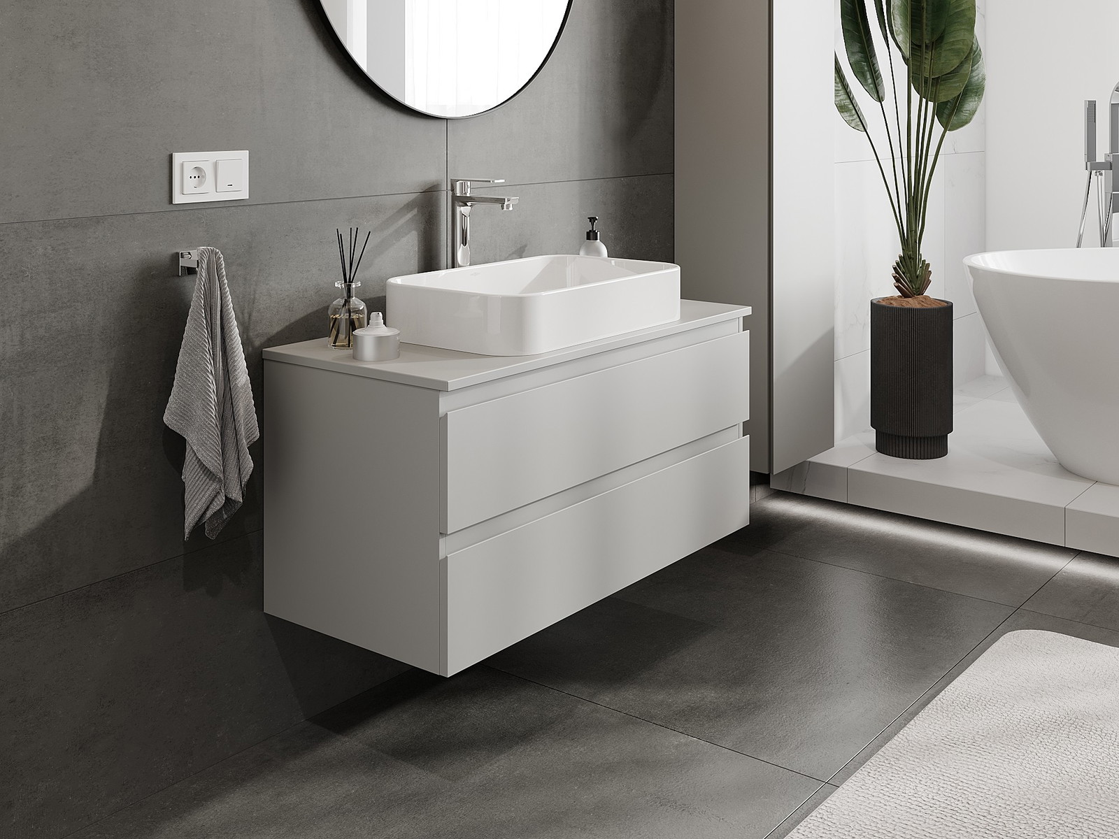 Våra modulära badrumsmöbler kan kombineras i olika färgkonfigurationer, vilket möjliggör fullständig personalisering. Du kan välja både utseende och funktioner för respektive delar, vilket gör att möblerna kan anpassas till dina egna stilistiska och funktionella preferenser.