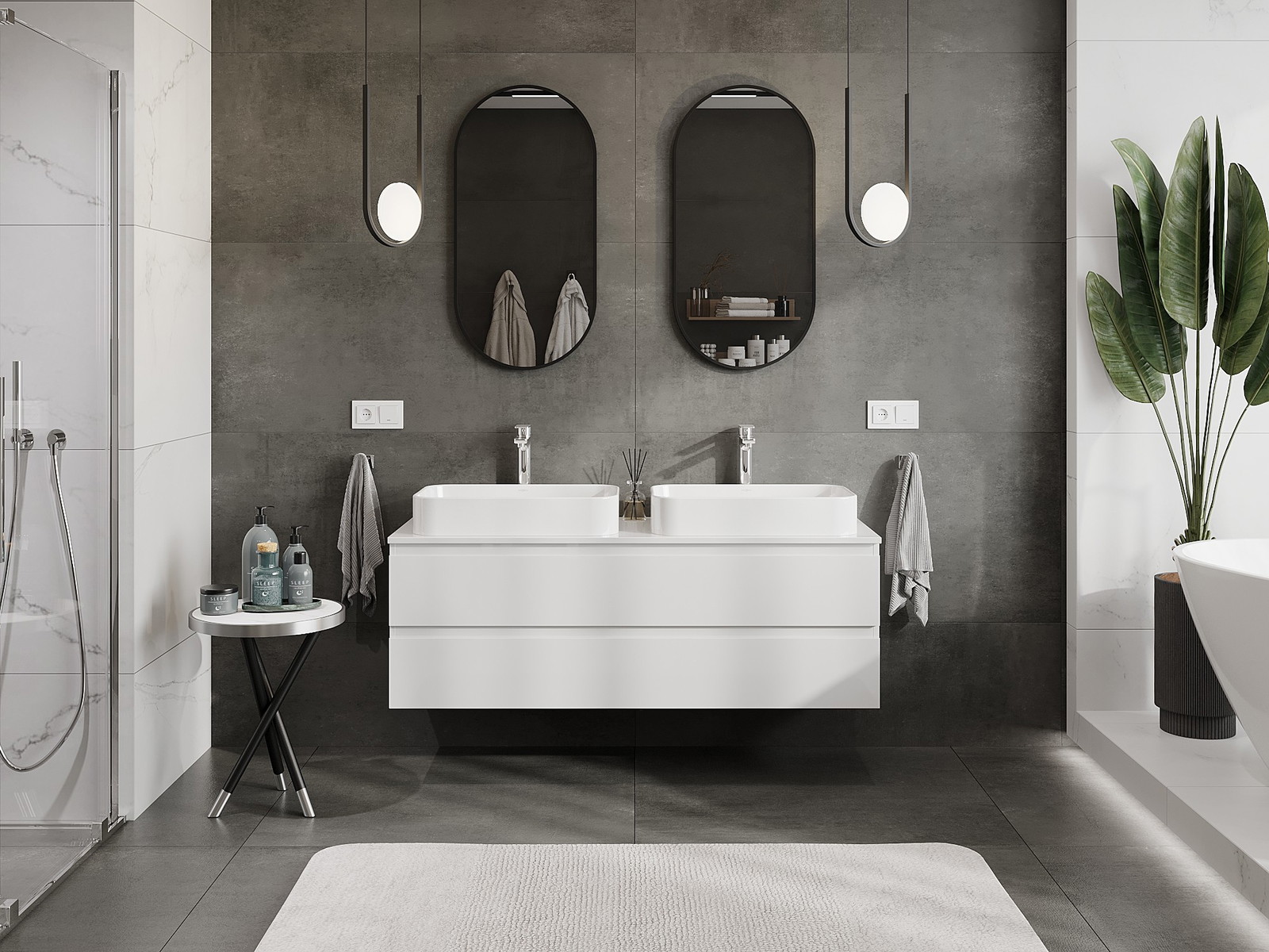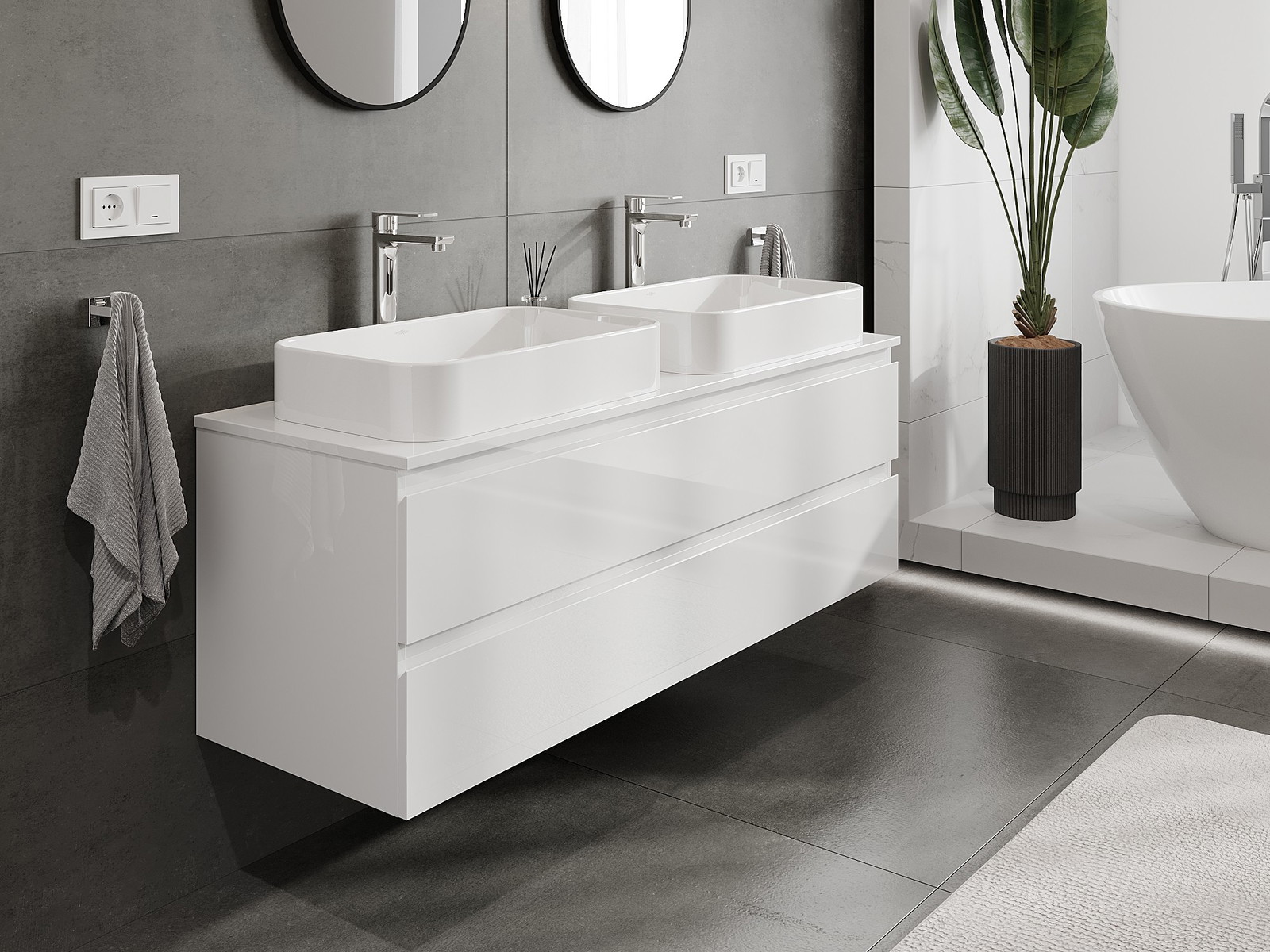 Våra modulära badrumsmöbler kan kombineras i olika färgkonfigurationer, vilket möjliggör fullständig personalisering. Du kan välja både utseende och funktioner för respektive delar, vilket gör att möblerna kan anpassas till dina egna stilistiska och funktionella preferenser.