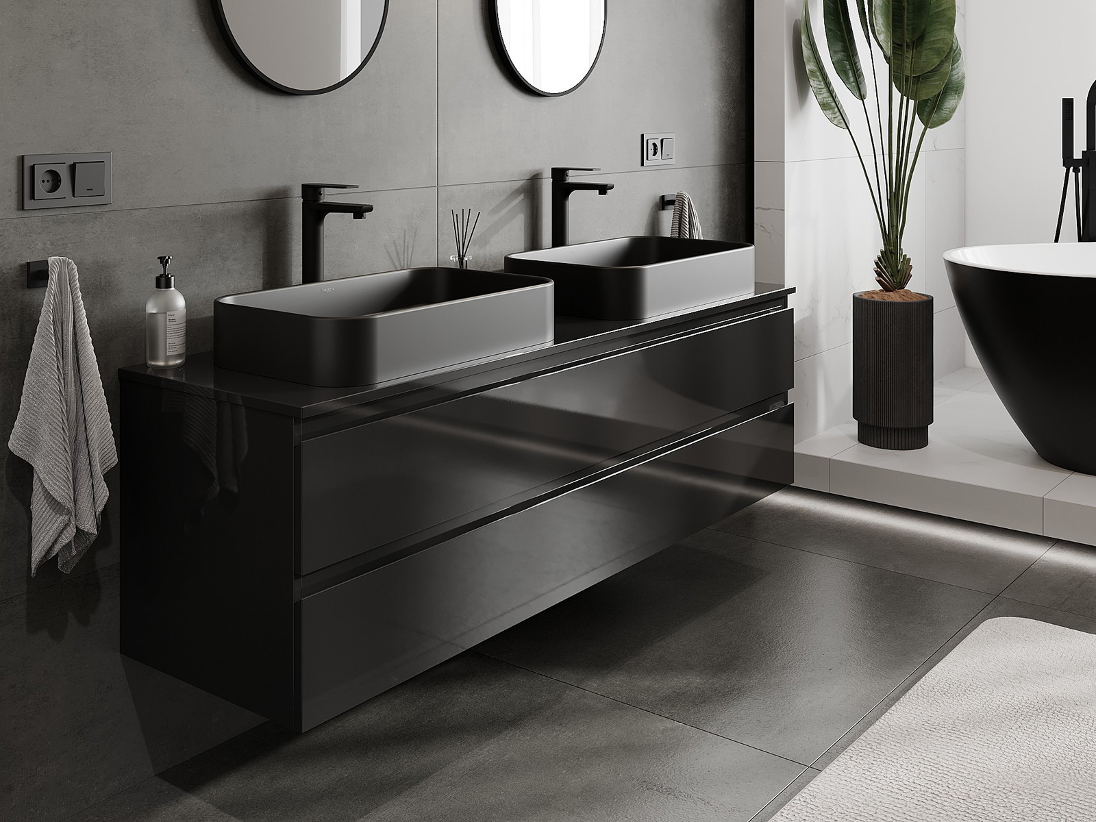 Våra modulära badrumsmöbler kan kombineras i olika färgkonfigurationer, vilket möjliggör fullständig personalisering. Du kan välja både utseende och funktioner för respektive delar, vilket gör att möblerna kan anpassas till dina egna stilistiska och funktionella preferenser.