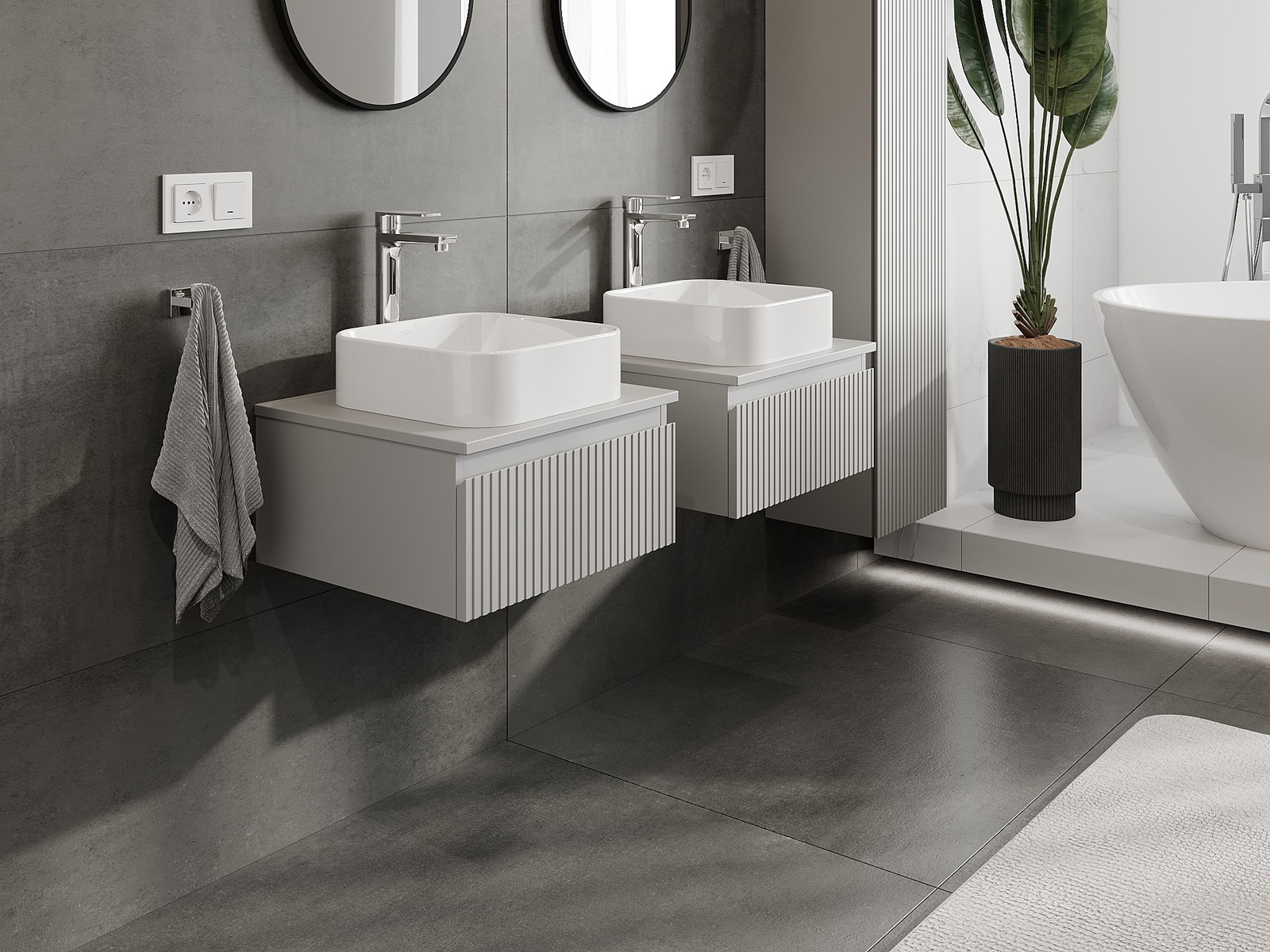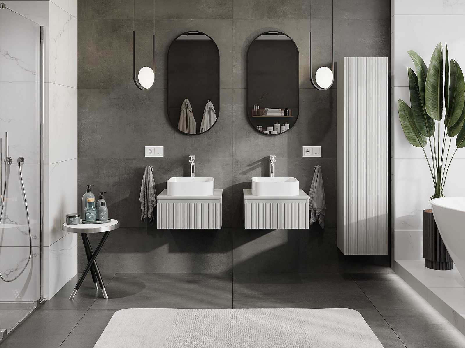 Våra modulära badrumsmöbler kan kombineras i olika färgkonfigurationer, vilket möjliggör fullständig personalisering. Du kan välja både utseende och funktioner för respektive delar, vilket gör att möblerna kan anpassas till dina egna stilistiska och funktionella preferenser.